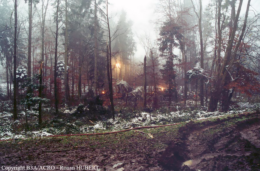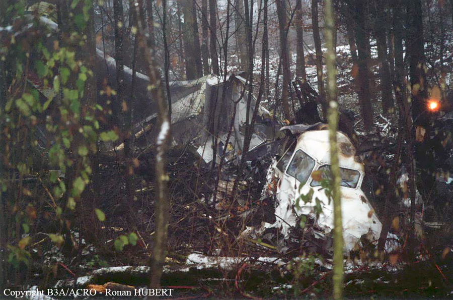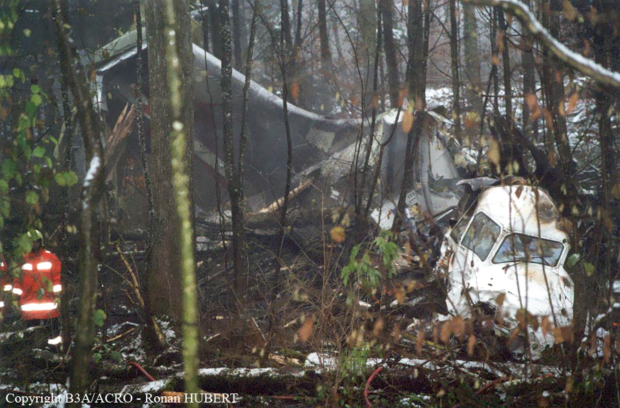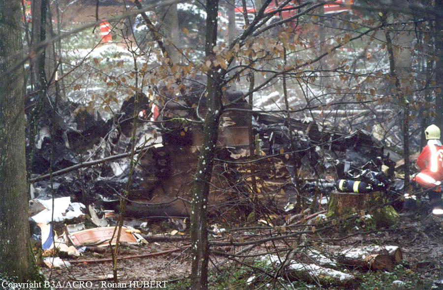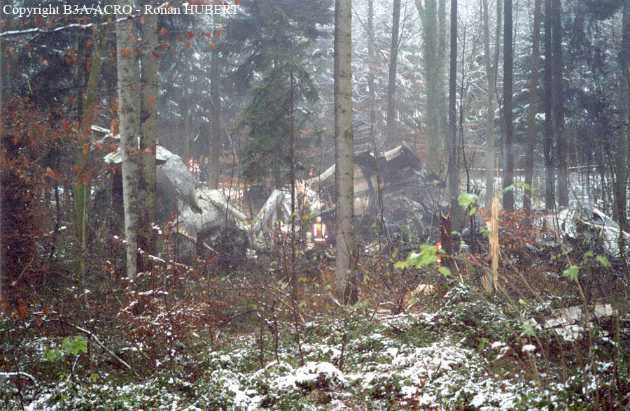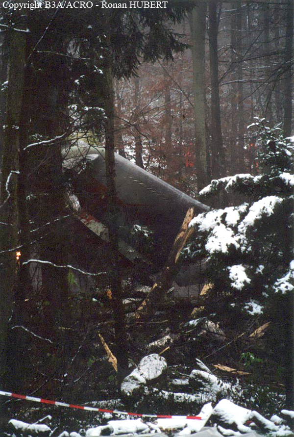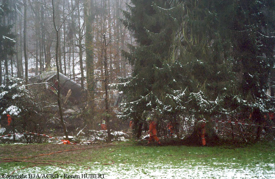 On 24 November 2001 at 20:01 UTC the aircraft AVRO 146 RJ 100, registered as HB-IXM of the Crossair airline company took off in darkness from runway 26L at Berlin-Tegel airport as scheduled flight CRX3597 to Zurich. At 20:58:50 UTC, after an uneventful flight, the aircraft received the clearance for a standard VOR/DME approach 28 at Zurich airport.Ahead of the aircraft involved in the accident, an Embraer EMB 145, flight CRX3891, landed on runway 28 at Zurich airport. The crew informed the control tower that the weather was close to the minimum for this runway. At 21:05:21 UTC flight CRX3597 reported on the aerodrome control frequency. When the aircraft reached the minimum descent altitude (MDA) of 2,390 feet QNH at 21:06:10, the commander mentioned to the copilot that he had certain visual ground contact and continued the descent. At 21:06:36 UTC the aircraft collided with treetops and subsequently crashed into the ground. The aircraft caught fire on impact. Twenty-one passengers and three crew members died from their injuries at the site of the accident; seven passengers and two crew members survived the accident. The wreckage was found in the Geissbühl forest, 4,050 metres short of runway 28.