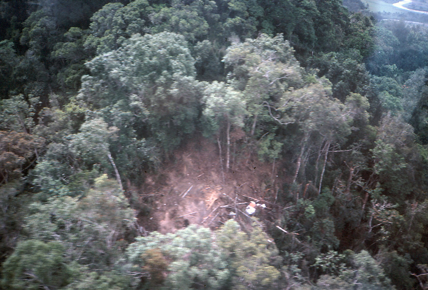 While approaching Mount Hagen Airport in poor weather conditions, the twin engine airplane struck the slope of a wooded mountain. The aircraft was totally destroyed and all eight occupants were killed.