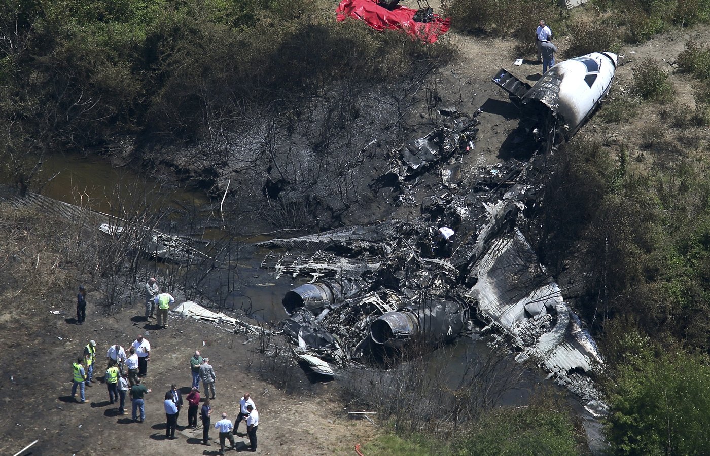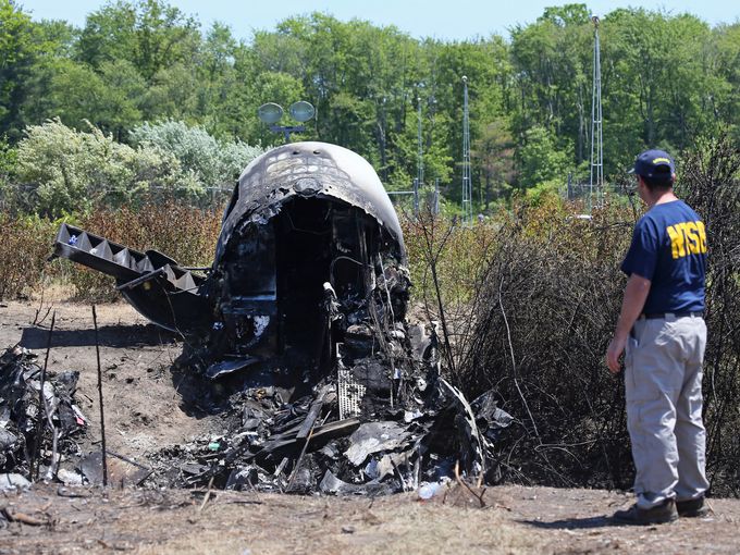 The aircraft crashed after it overran the end of runway 11 during a rejected takeoff at Laurence G. Hanscom Field (BED), Bedford, Massachusetts. The airplane rolled through the paved overrun area and across a grassy area, collided with approach lights and a localizer antenna, passed through the airport’s perimeter fence, and came to a stop in a ravine. The two pilots, a flight attendant, and four passengers died. The airplane was destroyed by impact forces and a postcrash fire. The corporate flight, which was destined for Atlantic City International Airport, Atlantic City, New Jersey, was conducted under the provisions of 14 Code of Federal Regulations (CFR) Part 91. An instrument flight rules flight plan was filed. Night visual meteorological conditions prevailed at the time of the accident. During the engine start process, the flight crew neglected to disengage the airplane’s gust lock system, which locks the elevator, ailerons, and rudder while the airplane is parked to protect them against wind gust loads. Further, before initiating takeoff, the pilots neglected to perform a flight control check that would have alerted them of the locked flight controls. A review of data from the airplane’s quick access recorder revealed that the pilots had neglected to perform complete flight control checks before 98% of their previous 175 takeoffs in the airplane, indicating that this oversight was habitual and not an anomaly. A mechanical interlock between the gust lock handle and the throttle levers restricts the movement of the throttle levers when the gust lock handle is in the ON position. According to Gulfstream, the interlock mechanism was intended to limit throttle lever movement to a throttle lever angle (TLA) of no greater than 6° during operation with the gust lock on. However, postaccident testing on nine in-service G-IV airplanes found that, with the gust lock handle in the ON position, the forward throttle lever movement that could be achieved on the G-IV was 3 to 4 times greater than the intended TLA of 6°. During takeoff, the pilot-in-command (PIC) manually advanced the throttle levers, but the engine pressure ratio (EPR) did not reach the expected level due to the throttles contacting the gust lock/throttle lever interlock. The PIC did not immediately reject the takeoff; instead, he engaged the autothrottle, and the throttle levers moved slightly forward, which allowed the engines to attain an EPR value that approached (but never reached) the target setting. As the takeoff roll continued, the second-in-command made the standard takeoff speed callouts as the airplane successively reached 80 knots, the takeoff safety speed, and the rotation speed. When the PIC attempted to rotate the airplane, he discovered that he could not move the control yoke and began calling out “(steer) lock is on.” At this point, the PIC clearly understood that the controls were locked but still did not immediately initiate a rejected takeoff. If the flight crew had initiated a rejected takeoff at the time of the PIC’s first “lock is on” comment or at any time up until about 11 seconds after this comment, the airplane could have been stopped on the paved surface. However, the flight crew delayed applying brakes for about 10 seconds and further delayed reducing power by 4 seconds; therefore, the rejected takeoff was not initiated until the accident was unavoidable. Among the victims was Lewis Katz, co-owner of the 'Philadelphia Inquirer'.