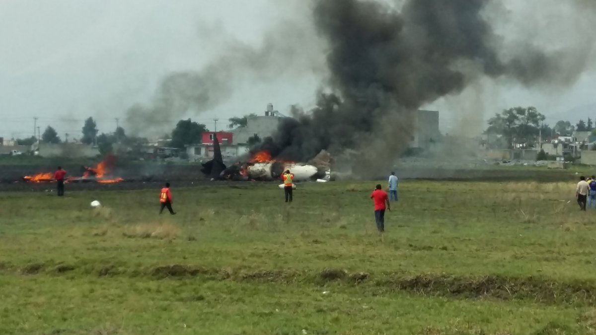 During the takeoff roll on runway 15 at Toluca-Licendiado Adolfo López Mateos, after the airplane passed the V1 speed, the warning light came on in the cockpit panel, informing the crew about the deployment of the reverse on the left engine. According to published procedures, the crew continued the takeoff and shortly after rotation, during initiale climb, the aircraft rolled to the left and crashed in an open field, bursting into flames. The wreckage was found about 200 metres past the runway end. The aircraft was destroyed and both pilots were killed.