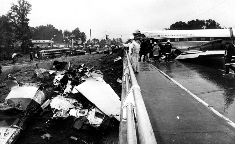 Lehigh Acres Development, Inc., Flight 701, a Martin 404, N40412, departed from Runway 02R at DeKalb-Peachtree Airport, Chamblee, Georgia, at 0916 e.d.t. on an Instrument Flight Rules flight plan to Fort Myers, Florida. Two pilots, two cabin attendants and 29 passengers were on board. The aircraft had been fueled to approximately 800 gallons prior to departure. The weather at the time of takeoff was: Measured 400 feet overcast, visibility 1 mile with very light rain and fog. Atlanta Departure Control established radar and radio contact with the flight one minute after takeoff. .During the climb, there was a loss of power from the No. 2 engine. This loss rapidly deteriorated to the extent that little useful power was being developed. While the crew was working to correct the discrepancy with the No. 2 engine, the No. 1 engine lost power. The crew declared an emergency and reported that they were going down. Departure Control attempted to vector the aircraft to the Atlanta International Airport for an emergency landing. When the aircraft descended below the overcast, the pilot observed Interstate Highway 285 just below and decided to make an emergency landing on the median strip, heading west. Touchdown on the highway occurred at approximately 0930. The aircraft skidded along the highway for approximately one-half mile, struck the side of the Moreland Avenue bridge, and came to rest on top of the bridge. As the aircraft proceeded along the highway, it struck an automobile that was traveling east and inflicted fatal injuries to the five occupants. One passenger in the aircraft received fatal injuries. The two pilots and one flight attendant received serious injuries. Twenty-seven passengers received injuries requiring medical treatment or hospitalization. The aircraft was destroyed by impact; no fire developed.