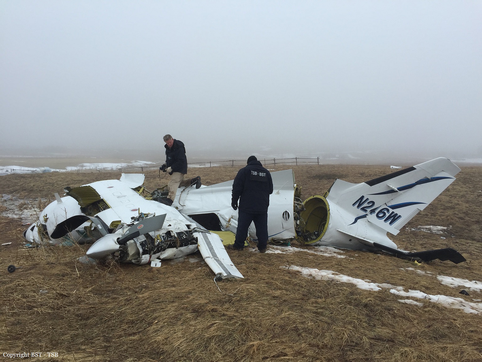 The twin engine aircraft left Montreal-Saint-Hubert Airport at 0930LT for a two hours flight to Le Havre-aux-Maisons, on Magdalen Islands. Upon arrival, weather conditions were marginal with low ceiling, visibility up to two miles, rain and wind gusting to 30 knots. During the final approach to Runway 07, when the aircraft was 1.4 nautical miles west-southwest of the airport, it deviated south of the approach path. At approximately 1230 Atlantic Daylight Time, aircraft control was lost, resulting in the aircraft striking the ground in a near-level attitude. The aircraft was destroyed and all seven occupants were killed, among them Jean Lapierre, political commentator and former Liberal federal cabinet minister of Transport. All passengers were flying to Magdalen Islands to the funeral of Lapierre's father, who died last Friday. The captain, Pascal Gosselin, was the founder and owner of Aéro Teknic.