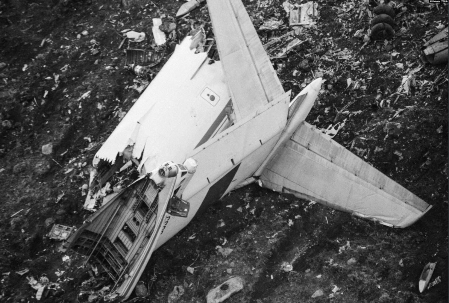 The aircraft was on its way to Leninakan to drop soldiers, first aid, medics and goods for the victims of the recent earthquake. On final approach at night, the aircraft disappeared from radar screens after it struck the slope of a mountain located 15 km from the airport. All 9 crew members and 68 of the 69 passengers were killed. A survivor was found among the debris (he was seating on the deck of a truck parked in the cargo compartment) but unfortunately died the following day.