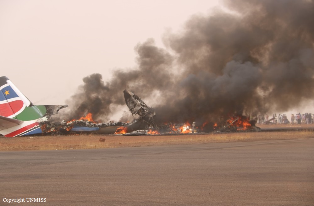 Following an uneventful flight from Juba, the crew initiated the approach to Wau Airport when he encountered poor weather conditions and limited visibility. On short final, during the last segment, the aircraft collided with a fire truck and near the runway 27 threshold, bursting into flames. All 45 occupants were rescued, among them 18 were injured. The airplane was totally destroyed by a post crash fire.