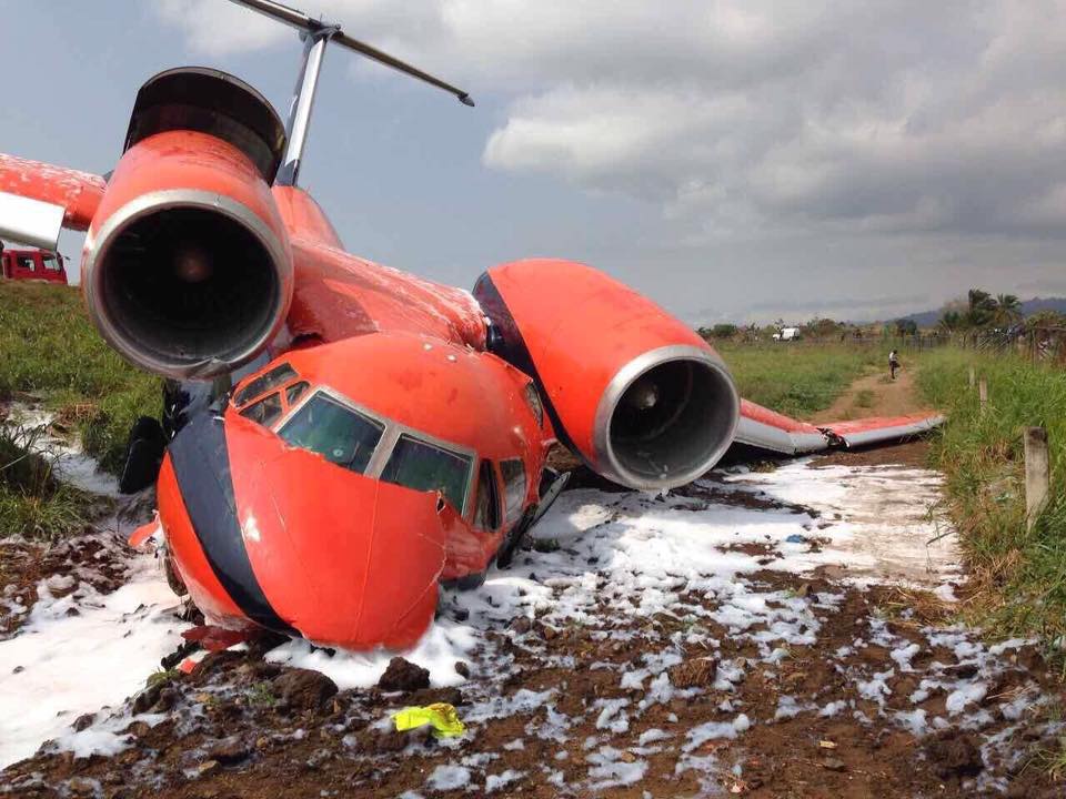 The aircraft was completing flight UNO-052P from Bamako to Gao on behalf of the United Nations Multidimensional Integrated Stabilization Mission in Mali (MINUSMA). En route, the crew encountered technical problems with the electrical system when the right generator failed. The crew attempted to start the APU several times but without success when the left generator also failed. The undercarriage were lowered manually and the landing was completed on a wet runway in rainy conditions. After touchdown, 500 metres past the runway threshold, the crew started the braking procedure but was unable to deploy the thrust reversers. At a speed of 140-160 km/h, the aircraft overran, lost its undercarriage and came to rest in a waterlogged land. All 11 occupants were rescued, among them six were injured. The aircraft was destroyed.