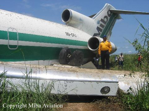The aircraft was completing a cargo flight with various equipments on behalf of the Conader, the Commission Nationale de Désarmement et de Réinsertion. Following an uneventful flight, the crew started the approach in heavy rain falls. After landing on a wet runway, the aircraft was unable to stop within the remaining distance and overran. It lost its undercarriage and came to rest in marshy field. All three occupants escaped uninjured while the aircraft was damaged beyond repair. Aquaplaning suspected.