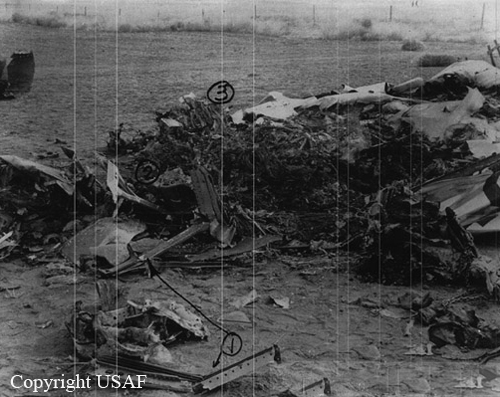 32 minutes after its departure from Dover AFB, while cruising east of Maryland coast at an altitude of 17,000 feet, the airplane disappeared from radar screens and crashed into the Atlantic Ocean. An empty life raft and a nose wheel were found floating on water some 53 miles east of Ocean City, Maryland, but no trace of the ten occupants was found. Amazingly, no other debris were found as the airplane was carrying 25 tons of various materials consisting of clothes, boxes and bags.