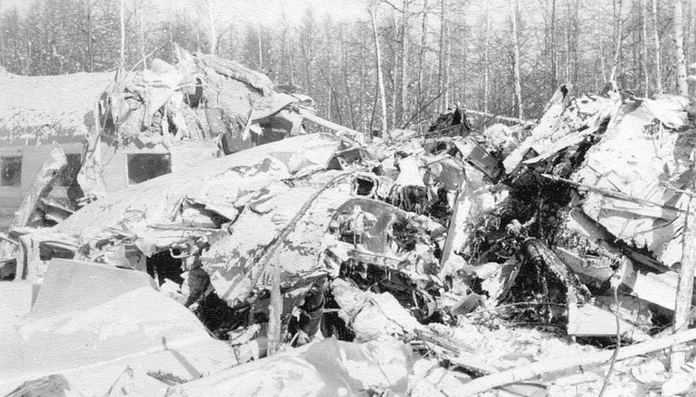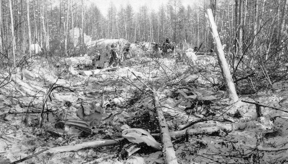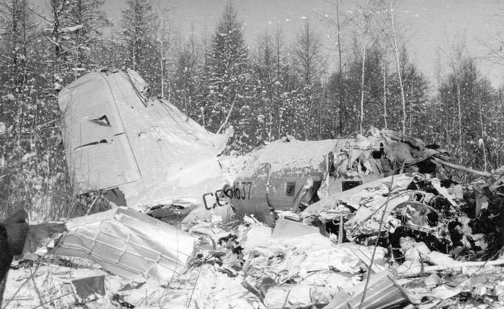 Shortly after takeoff from Aldan Airport, while in initial climb at a speed of 160 km/h, the right engine failed. The crew elected to make an emergency landing on a small hill located six km from the airport and reduced his altitude when the right wing struck trees and the roof of a barn before crashing in flames. All occupants were evacuated safely while the aircraft was destroyed by a post crash fire.