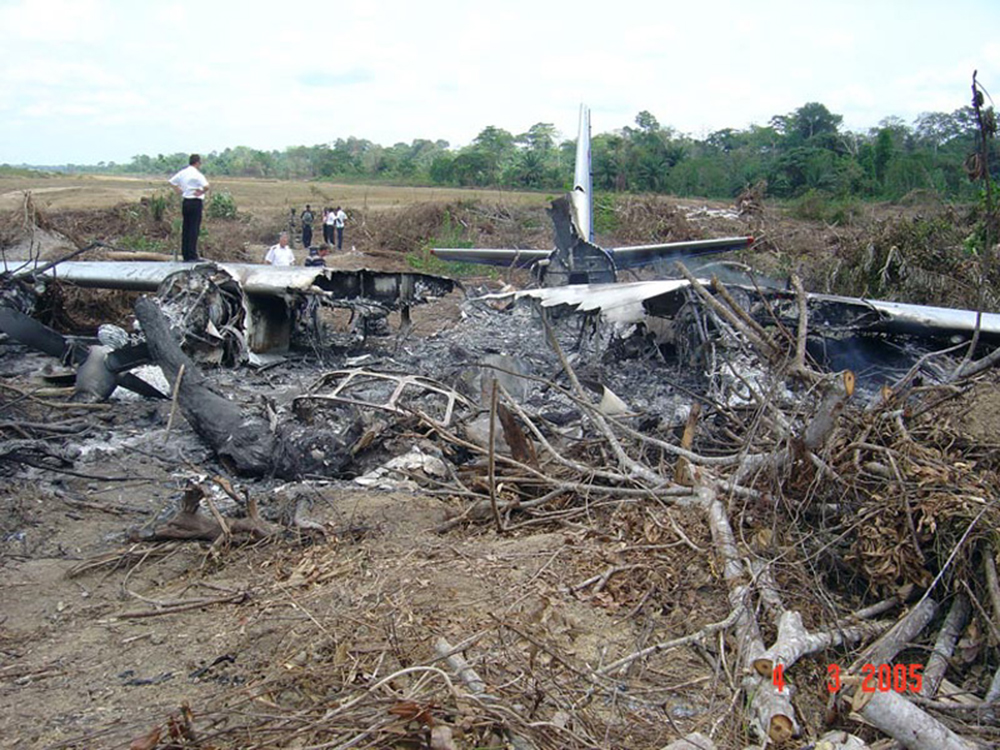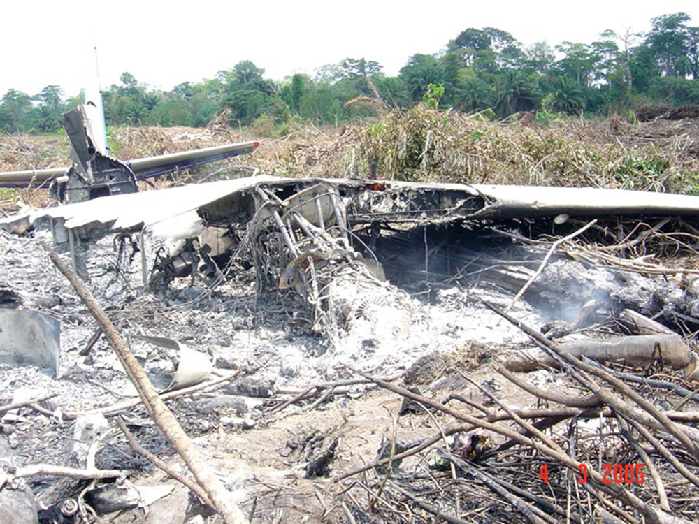 The four engine aircraft was completing a cargo flight from Pointe-Noire to Brazzaville, carrying one passenger, a crew of six and a load consisting of automobiles and various goods. On final approach to runway 05L in poor weather conditions, the crew descended too low on the glide when the aircraft impacted houses and tree tops and eventually crashed in the district of La Poudrière, about 900 metres short of runway. All 7 occupants were killed as well as 25 people on the ground. Fourteen other people were injured. At the time of the accident, weather conditions were poor with thunderstorm activity, rain falls and limited visibility. MAK stated in February 2013 that they received the FDR from the Congolese authorities but the recorders show mechanical damages as a result of the impact forces.