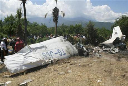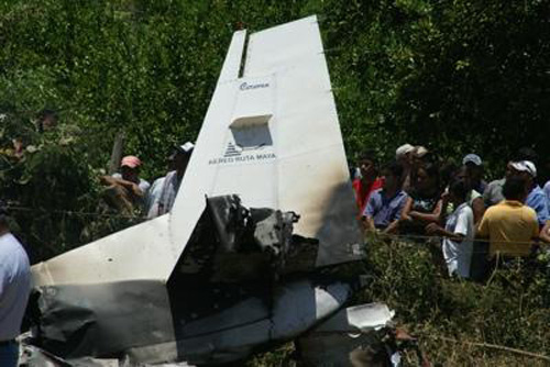 The airplane departed San José-Juan Santamaría Airport runway 07 at 0940LT on a cargo service (flight JOS7216) to Guatemala City, carrying two pilots and a load of various goods. When the crew reached FL210, he declared an emergency and reported technical problems with the hydraulic system. The crew encountered a 'HYDRAULIC QUANTITY indication then a HYDRAULIC SYSTEM PRESSURE (L ONLY) second indication. At this time, the left autopilot and yaw damper disengaged. After being cleared to return, the crew followed a holding pattern and the airplane landed at a speed of 137 knots (Vref 130 kts) on runway 07. Following a normal touchdown, the crew initiated the braking procedure when the airplane started to veer to the right. It skidded to the right, made an almost 90° turn, descended a bank, lost its undercarriage and came to rest in a grassy area located about five metres below the runway elevation, broken in two. Both pilots evacuated with minor injuries.