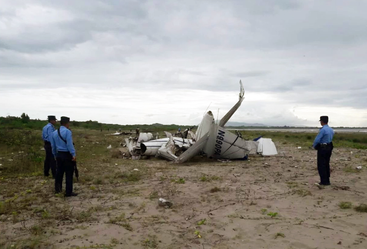 The twin engine aircraft was engaged in an illegal flight, carrying two pilots and a load consisting of 600 kilos of cocaine. After being tracked by the Honduran Police, the crew apparently attempted an emergency landing when the aircraft crashed. While the copilot was injured, the captain was killed.