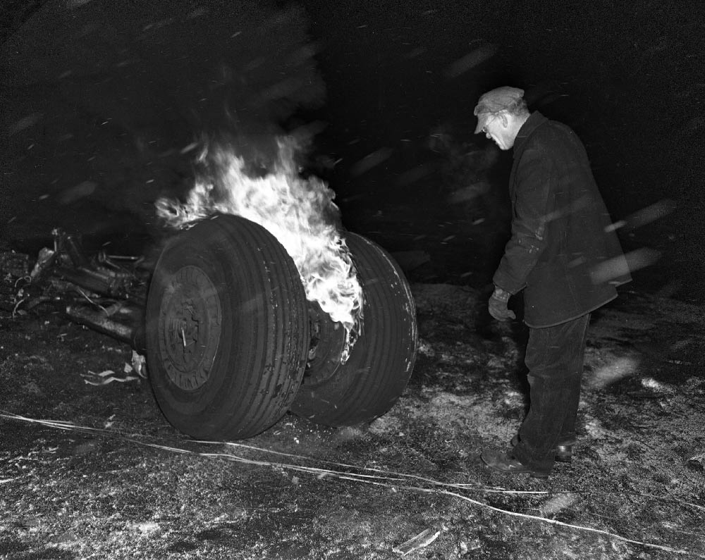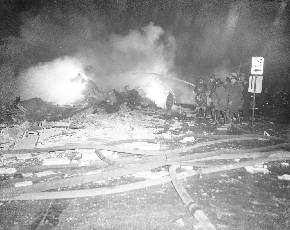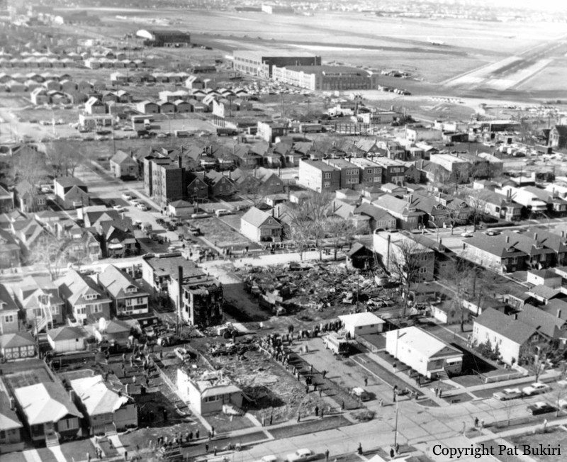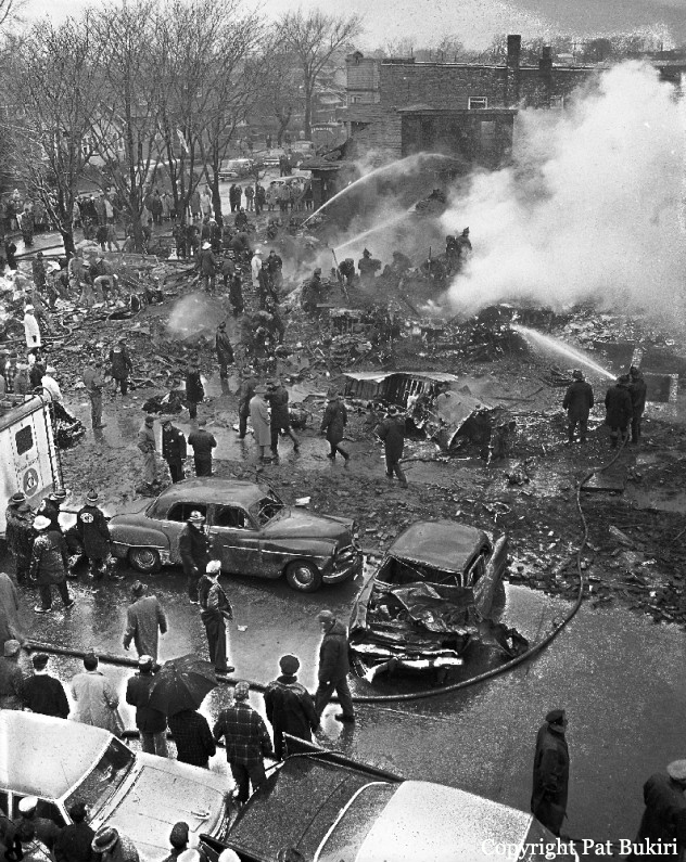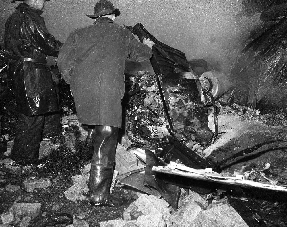 Flight 371 of December 1, 1959, was scheduled between Philadelphia, Pennsylvania, and Cleveland, Ohio, with stops at Harrisburg, Williamsport, Bradford, and Erie The flight originated at Philadelphia after departing Atlantic City at 0718 1 as Ferry Flight 174 to Philadelphia. Prior to the departure of Flight 371 Captain Goldsmith received the available en route and terminal weather reports and forecasts. The flight was dispatched IFR but the captain elected to depart VFR because of the existing VFR weather en route. Allegheny company policy is to dispatch all flights IFR unless load conditions or navigation facilities require a VFR release. Flight 371 departed Philadelphia at 0815 with 17 revenue passengers At the time of takeoff the gross weight of the aircraft, was 36,477 pounds, which was 2,083 pounds below the allowable gross takeoff weight at Philadelphia for landing at Harrisburg. Following the takeoff from Philadelphia the flight proceeded VFR to Harrisburg where it landed at 0851 without incident and deplaned four passengers and 404 pounds of cargo. Flight 371 departed Harrisburg at 0906 with 22 revenue passengers, one additional crew member, and 598 pounds of baggage, mail, and cargo The gross weight at time of takeoff was 36,429 pounds, which was 2,081 pounds below the allowable takeoff weight at Harrisburg for landing at Williamsport. The Williamsport weather at 0855 was reported as Partial obscuration, 1,000 feet scattered, estimated 2,500 overcast, visibility 2 miles, light snow; temperature 32, dewpoint 30, wind west-northwest at seven knots; altimeter 30.26 Remarks - 4/10 sky obscured by snow few fracto-stratus at 1,000 feet along mountains. This weather was not available to the pilot at the time of his departure. At 0923 Flight 371 reported to Williamsport radio that it was making 360-degree turns five minutes south of the Williamsport low frequency range at an altitude of 3,500 feet, VFR, and requested an instrument clearance to the Williamsport Airport Williamsport radio responded by giving the 0917 Williamsport weather observation, which was: Precipitation ceiling 1,000 feet, sky obscured; visibility one mile in light snow, wind west at five knots; altimeter 30.26 At this time Williamsport radio requested that the flight stand by for clearance At 0927 Flight 371 was cleared direct to the Williamsport low frequency range from its present position, to maintain 4,000 feet At 0928 New York Center instructed Williamsport radio to advise Flight 371 to report north of Victor Airway 232. The flight received this information at 0930 At 0931 Flight 371 advised that it was north of Victor Airway 232 At 0933 Flight 371 was cleared for an approach to the Williamsport Airport, to report on the ground, or cancelling IFR. At this time Flight 371 reported over the Williamsport low frequency range, leaving 4,000 feet, and commencing an approach At 0935 the Williamsport 0934 weather observation was given to Flight 371 as being 1,000-feet scattered, precipitation observation 7,000 feet; visibility 1-1/2 miles in light snow, wind west at four knots, altimeter setting 30 26 inches Allegheny minimums for this approach to the Williamsport Airport are 900 feet ceiling and 1-1/2 miles visibility. At 0941 Flight 371 reported over the low frequency range on final approach and the communicator noted the time as being 0941 At this time the flight was advised of the surface wind, altimeter setting, and that the runway lights were on high brilliancy on runway 9-27 Flight 371 acknowledged all of these transmissions from Williamsport radio At 0942 the flight reported in range to the company on company frequency At this time the company advised that their altimeter setting was 30 25 inches and requested the arrival and departure times of the flight at Harrisburg Flight 371 acknowledged the altimeter setting but did not relay the time information requested. At approximately 0945 Flight 371 was observed over the airport, too high however to effect a landing After this initial approach to the field, Flight 371 flew over the field and made a right turn for a circling approach to runway 27 As this circle was apparently completed, the aircraft was observed to roll out of its right turn and into a left turn and proceed in level flight, on a southerly direction, disappearing into snow showers and clouds. One observer believed that at the time the aircraft commenced this left turn to the southerly heading it was approximately one-fourth of a mile from the end of runway 27 and at an altitude of approximately 400 feet above the ground. A short while after Flight 371 was seen to disappear into the snow showers and clouds on a southerly heading a loud explosive-type noise was heard at approximately 0947 After all attempts to contact Flight 371 had failed, search and rescue at Olmstead Air Force Base, Middletown, Pennsylvania, was advised of a possible crash. At approximately 1120 the wreckage of Flight 371 was sighted on Bald Eagle Mountain at an elevation of 1,150 m s l. on a 172-degree magnetic heading from and about one and one-thirdmiles south of the approach end of runway 27. The crew of 3, one additional crew member, and 21 of the 22 revenue passengers were killed. The aircraft was destroyed.