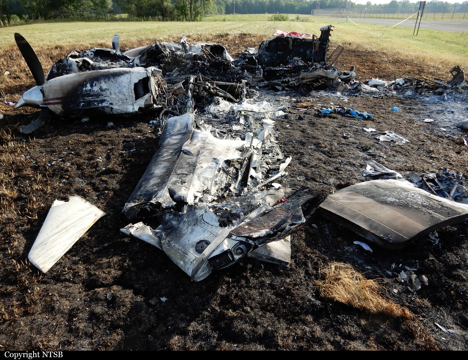 The single engine airplane was returning to its base at Youngstown-Windsor Airfield following a local skydiving mission. On approach to the grassy runway, the airplane went out of control, impacted a road and crashed below in a pasture. The airplane was totally destroyed and the pilot, sole on board, was killed.