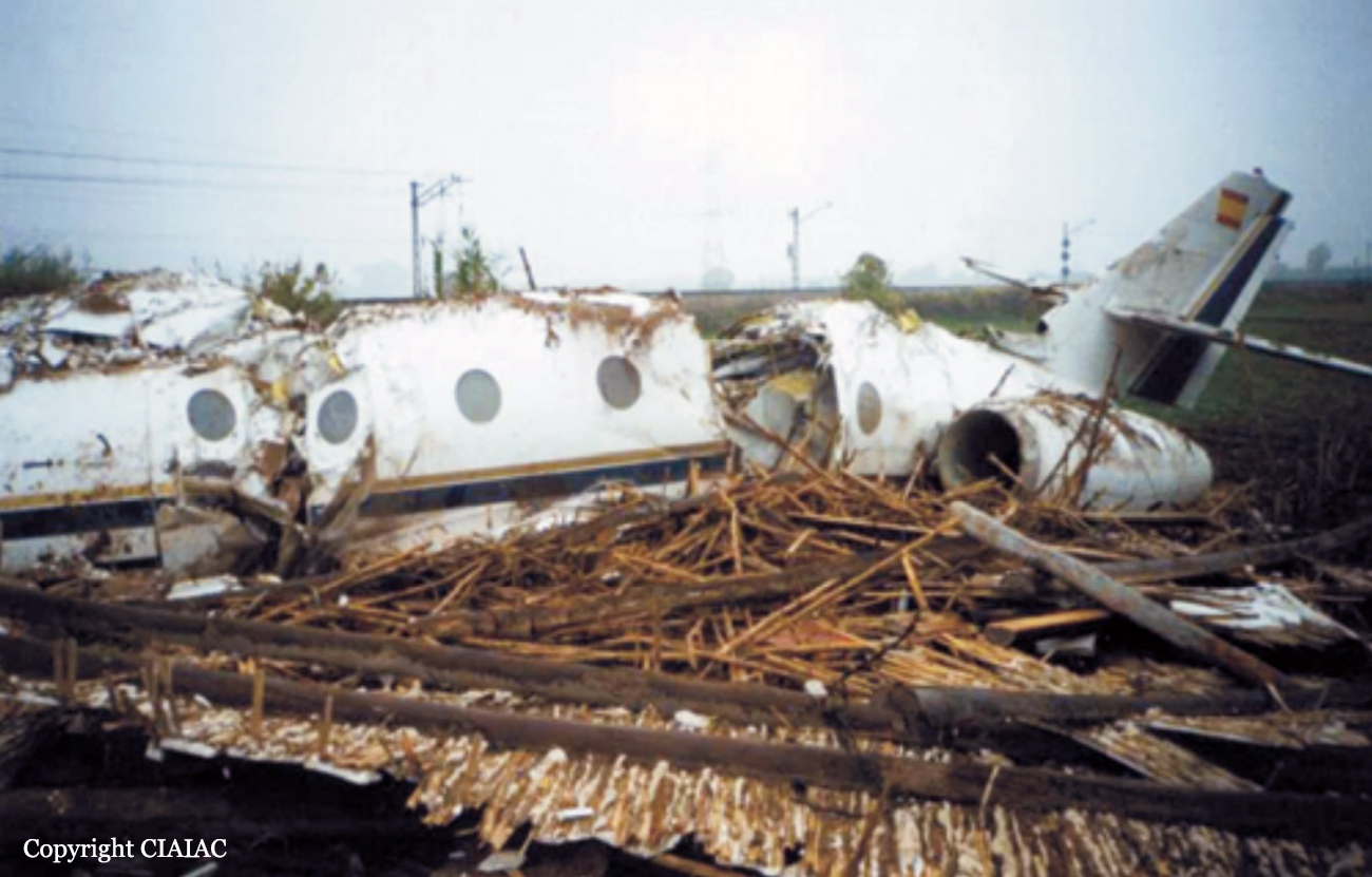 The aircraft departed Málaga-Pablo Ruiz Picasso Airport at 0543LT on a positioning flight to Córdoba. On board were two pilots who were flying to Córdoba to pick up a medical team for a transplantation mission. Fifteen minutes after takeoff, the crew started the descent but encountered poor visibility due to the night and foggy conditions. At that moment, the horizontal visibility was 300 metres and the vertical visibility about 500 feet. As Córdoba Airport was not equipped with an ILS system, the crew decided to attempt an approach via a GPS system. On final approach, the aircraft was too low, struck a utility pole then crashed onto a uninhabited house located 1,500 metres short of runway 21. The aircraft was destroyed, one pilot was killed and the second was seriously injured.