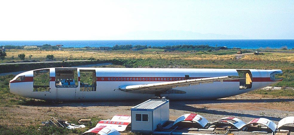 Following an uneventful flight from Dubai, the crew completed the approach to Rhodes-Diagoras Airport in rain falls and strong winds. The aircraft landed at a speed of 166 knots, about 22 knots above Vref. After touchdown, the ground spoilers did not deploy automatically because they had not been armed. Consequently the auto brake system, which operates by the deployment of spoilers, did not activate. The crew attempted manual braking but this operation was too late and the aircraft was unable to stop within the remaining distance. It overran, lost its undercarriage and came to rest few dozen metres further. All 271 occupants evacuated safely while the aircraft was damaged beyond repair.