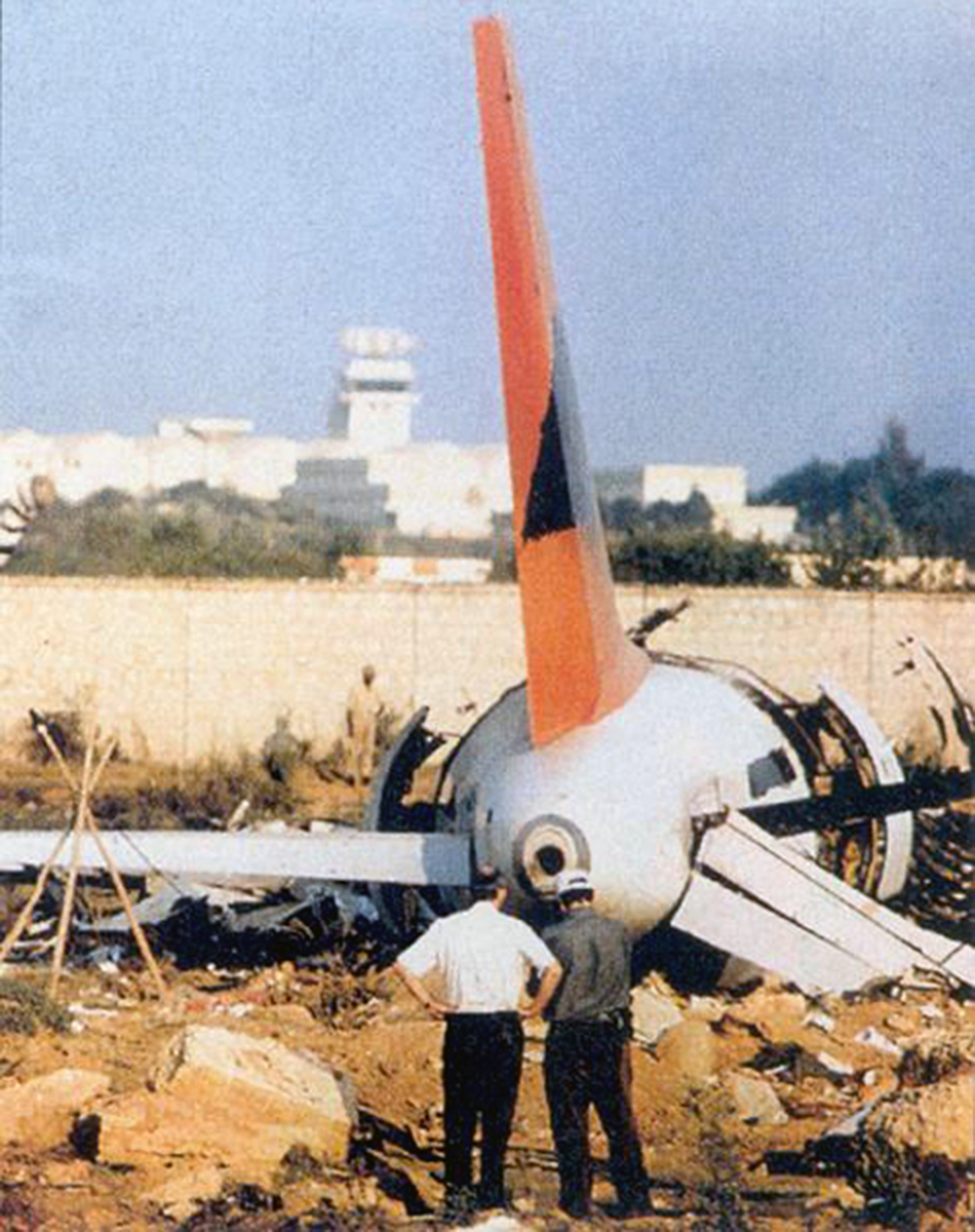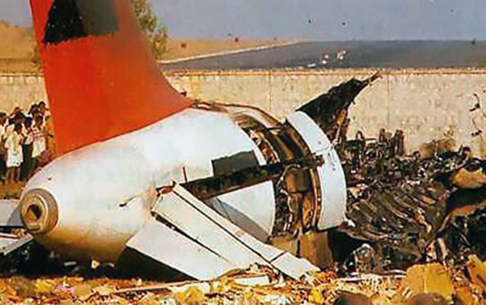 Indian Airlines Flight 605 took off from Mumbai, India, at 11:58 for a domestic flight to Bangalore. At 12:25 Bangalore approach was contacted and prevailing weather was passed on to the crew (wind variable 5 knots, visibility 10 km, clouds 2 octa 2,000 feet, temperature 27° C, QNH 1018). At 12:44 the aircraft was cleared to descend to FL110. Reaching FL110, vectors were given for a visual runway 09 approach. On final approach, the aircraft descended well below the normal approach profile and kept descending until it struck the boundaries of the Karnataka Golf Club (2,300 feet short of the runway and 200 feet right of the extended centerline. The aircraft rolled for 80 feet and lifted off again for about 230 feet and came down again on the 17th green of the golf course. The landing gear wheels dug into the ground and the aircraft impacted a 12 feet high embankment, causing the gears and engines to be sheared off. The aircraft continued over the embankment and came to rest in a grassy, marshy and rocky area.