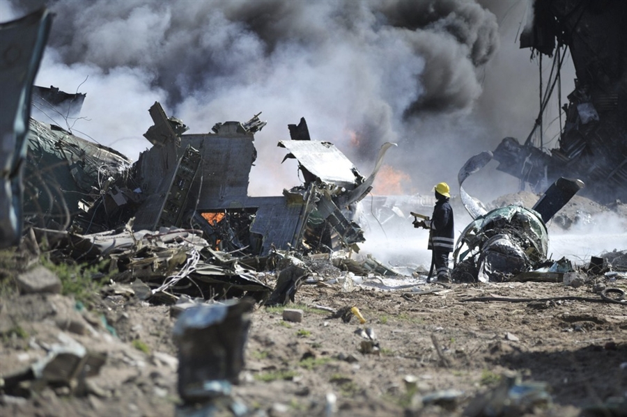 The four engine aircraft departed Dire Dawa on a special flight to Mogadishu, carrying 6 crew members and a load consisting of weapons and ammunition intended for the AMISOM, the African Union Mission in Somalia. After landing, the aircraft skidded on runway, overran and crashed against a perimeter wall, bursting into flames. The aircraft was destroyed by impact forces and a post impact fire fed by ammunition which caused multiple explosions. Four crew were killed while two others were seriously injured.