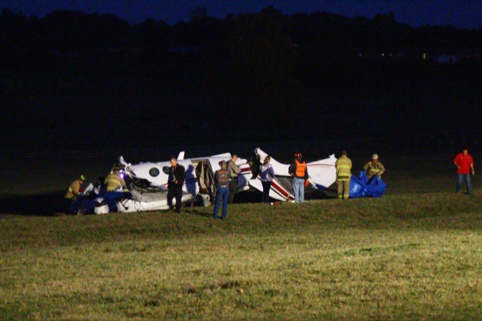 As the airplane was descending toward its destination airport, the pilot reported to an air traffic controller en route that he needed to change his destination to a closer airport because the airplane was low on fuel. The controller advised him to land at an airport that was 4 miles away. Shortly after, the pilot contacted the alternate airport’s air traffic control tower (ATCT) and reported that he was low on fuel. The tower controller cleared the airplane to land, and, about 30 seconds later, the pilot advised that he was not going to make it to the airport. The airplane subsequently impacted a field 3.25 miles southeast of the airport. One witness reported hearing the engine sputter, and another witness reported that the engine “did not sound right.” Forty-foot power lines crossed the field 311 feet from the point of impact. It is likely that the pilot was attempting to avoid the power lines during the forced landing and that the airplane then experienced an inadvertent stall and an uncontrolled collision with terrain. About 1 quart of fuel was observed in each fuel tank. No evidence of fuel spillage was found on the ground; no fuel stains were observed on the undersides of the wing panels, wing trailing edges, or engine nacelles; and no fuel smell was observed at the accident site. However, the fuel totalizer showed that 123 gallons of fuel was remaining. Magnification of the annunciator panel light bulbs revealed that the left and right low fuel pressure annunciator lights were illuminated at the time of impact. An examination of the airframe and engines revealed no anomalies that would have precluded normal operation. About 1 month before the accident, the pilot had instructed the fixed-base operator at Camden, Arkansas, to put 25 gallons of fuel in each wing tank; however, it is unknown how much fuel was already onboard the airplane. Although the fuel totalizer showed that the airplane had 123 gallons of fuel remaining at the time of the crash, information in the fuel totalizer is based on pilot inputs, and it is likely the pilot did not update the fuel totalizer properly before the accident flight. The pilot was likely relying on the fuel totalizer instead of the fuel gauges for fuel information, and he likely reported his low fuel situation to the ATCT after the annunciator lights illuminated.