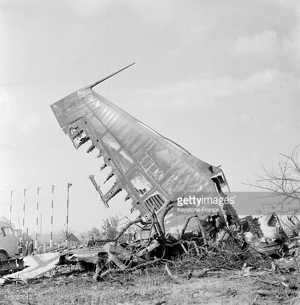The Boeing 707 aircraft, named "Chateau de Sully", was on a non-scheduled (charter) international flight from Paris (ORY) to Atlanta (ATL) and Houston via New York (JFK). Ten crew and 122 passengers were on the flight when, after a considerable delay to await the arrival of passengers, it was cleared to take off from runway 08 at Orly Airport at 11:32 UTC. It aligned itself for takeoff and waited 6 seconds, which permitted the setting and checking of takeoff parameters on the four engines. Full thrust was applied, and the aircraft accelerated normally. From testimony and flight recorder data, the takeoff was reconstructed as follows. Between 20 to 40 seconds after the start of the roll, the rate of acceleration was steady at 1.80 m/s2. The aircraft rolled along the runway centre line without showing any tendency to veer to either side. V1, determined as 147 kt IAS, was attained after a ground roll of 1500 m. This was followed by VR, 158 kt IAS. Forty-eight seconds after the beginning of the takeoff run and approximately when passing the 1800 m mark, the aircraft reached the rotation speed (VR), and the pilot-in-command initiated the takeoff manoeuvre by pulling backwards on the control column. According to witnesses, the aircraft made an incomplete rotational movement about 2100 m from the threshold. It remained for 4 to 6 seconds with its nose slightly raised. Then the nose dropped when the brakes were applied. Thick smoke streamed from the wheels. The aircraft was 2600 m from its starting point and had reached a maximum speed of 179 kt IAS. It braked for the last 680 m of the runway with an average deceleration of 1.2 to 1.3 m/s After 250 m of braking the aircraft veered slightly to the left, and 50deg of flap were selected. Then after another 250 m the aircraft listed heavily to starboard. Its path then curved right, which suggests a possible attempt to ground loop. However, the aircraft's speed precluded the success of this manoeuvre, and it left the runway while still on the centre line. It rolled for a while on the grass extension of the runway but, because of the unevenness of the terrain and the high speed of the aircraft (160 kt), the port gear broke off 110 m from the end of the runway and was wrenched away. The aircraft pivoted left, and engines No. 1 and 2 scraped the ground. Fire broke out in the port wing at the level of the landing gear. About 300 m beyond the end of the runway the aircraft crossed the encircling road. The starboard gear collapsed, and No. 2 engine broke loose. It then struck the approach lights, which represented a considerable obstacle. It started to disintegrate when reaching the hollow at the end of the runway extension, which descends at a steep angle towards the Seine. The front part of the fuselage struck a house and garage. The nose of the aircraft broke away, and the rest of the fuselage came to a stop 100 m further on. The site of the accident was 550 m beyond the end of runway 08 on its extended centre line, at an elevation of 89 m. The airplane was completely destroyed by a post crash fire. Two stewardess who seated in the rear were slightly injured while all 130 other occupants were killed.