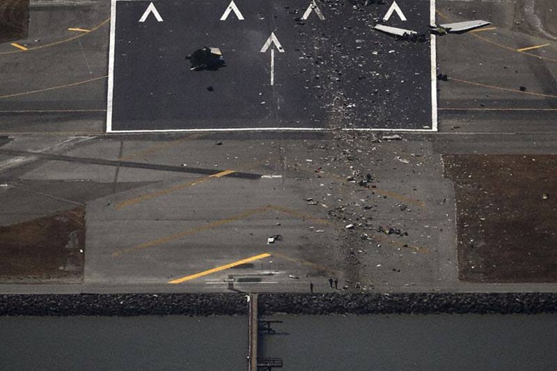 On July 6, 2013, about 1128 Pacific daylight time, a Boeing 777-200ER, Korean registration HL7742, operating as Asiana Airlines flight 214, was on approach to runway 28L when it struck a seawall at San Francisco International Airport (SFO), San Francisco, California. Three of the 291 passengers were fatally injured; 40 passengers, 8 of the 12 flight attendants, and 1 of the 4 flight crewmembers received serious injuries. The other 248 passengers, 4 flight attendants, and 3 flight crewmembers received minor injuries or were not injured. The airplane was destroyed by impact forces and a postcrash fire. Flight 214 was a regularly scheduled international passenger flight from Incheon International Airport, Seoul, Korea, operating under the provisions of 14 Code of Federal Regulations Part 129. Visual meteorological conditions prevailed, and an instrument flight rules flight plan was filed. The flight was vectored for a visual approach to runway 28L and intercepted the final approach course about 14 nautical miles (nm) from the threshold at an altitude slightly above the desired 3° glidepath. This set the flight crew up for a straight-in visual approach; however, after the flight crew accepted an air traffic control instruction to maintain 180 knots to 5 nm from the runway, the flight crew mismanaged the airplane’s descent, which resulted in the airplane being well above the desired 3° glidepath when it reached the 5 nm point. The flight crew’s difficulty in managing the airplane’s descent continued as the approach continued. In an attempt to increase the airplane’s descent rate and capture the desired glidepath, the pilot flying (PF) selected an autopilot (A/P) mode (flight level change speed [FLCH SPD]) that instead resulted in the autoflight system initiating a climb because the airplane was below the selected altitude. The PF disconnected the A/P and moved the thrust levers to idle, which caused the autothrottle (A/T) to change to the HOLD mode, a mode in which the A/T does not control airspeed. The PF then pitched the airplane down and increased the descent rate. Neither the PF, the pilot monitoring (PM), nor the observer noted the change in A/T mode to HOLD. As the airplane reached 500 ft above airport elevation, the point at which Asiana’s procedures dictated that the approach must be stabilized, the precision approach path indicator (PAPI) would have shown the flight crew that the airplane was slightly above the desired glidepath. Also, the airspeed, which had been decreasing rapidly, had just reached the proper approach speed of 137 knots. However, the thrust levers were still at idle, and the descent rate was about 1,200 ft per minute, well above the descent rate of about 700 fpm needed to maintain the desired glidepath; these were two indications that the approach was not stabilized. Based on these two indications, the flight crew should have determined that the approach was unstabilized and initiated a go-around, but they did not do so. As the approach continued, it became increasingly unstabilized as the airplane descended below the desired glidepath; the PAPI displayed three and then four red lights, indicating the continuing descent below the glidepath. The decreasing trend in airspeed continued, and about 200 ft, the flight crew became aware of the low airspeed and low path conditions but did not initiate a go-around until the airplane was below 100 ft, at which point the airplane did not have the performance capability to accomplish a go-around. The flight crew’s insufficient monitoring of airspeed indications during the approach resulted from expectancy, increased workload, fatigue, and automation reliance. When the main landing gear and the aft fuselage struck the seawall, the tail of the airplane broke off at the aft pressure bulkhead. The airplane slid along the runway, lifted partially into the air, spun about 330°, and impacted the ground a final time. The impact forces, which exceeded certification limits, resulted in the inflation of two slide/rafts within the cabin, injuring and temporarily trapping two flight attendants. Six occupants were ejected from the airplane during the impact sequence: two of the three fatally injured passengers and four of the seriously injured flight attendants. The four flight attendants were wearing their restraints but were ejected due to the destruction of the aft galley where they were seated. The two ejected passengers (one of whom was later rolled over by two firefighting vehicles) were not wearing their seatbelts and would likely have remained in the cabin and survived if they had been wearing their seatbelts. After the airplane came to a stop, a fire initiated within the separated right engine, which came to rest adjacent to the right side of the fuselage. When one of the flight attendants became aware of the fire, he initiated an evacuation, and 98% of the passengers successfully self-evacuated. As the fire spread into the fuselage, firefighters entered the airplane and extricated five passengers (one of whom later died) who were injured and unable to evacuate. Overall, 99% of the airplane’s occupants survived.