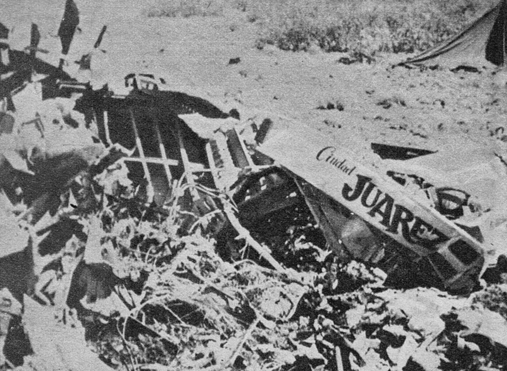 The aircraft christened 'Ciudad Juarez' departed Biggs AAF on a training mission with two F-100A Super Sabre. After five simulated missile passes followed by tail-chase gun "attacks" van Scyoc, the 188th's Safety Officer, hauled his fighter round for a final Sidewinder practice. He was closing with the bomber when his No. 2 AIM-9B suddenly left its rail, homed on to the B-52's left inboard engine pod and exploded, severing the wing. The B52 went out of control and entered a dive. Three crew members were able to bail out before the airplane crashed on Mt Taylor and was destroyed, killing five other crew members.