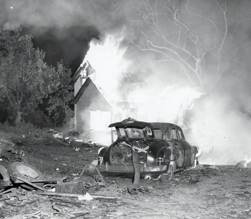 The crew was engaged in a routine cold war training mission out from Loring AFB, Maine. While cruising by night at an altitude of 36,400 feet over Minnesota State, the tail broke off and the airplane went into a dive. In 108 seconds, the heavy bomber descended at high speed to the altitude of 8,000 feet before crashing in a huge explosion in Inver Grove Heights, about 7,5 miles south of Saint Paul. The aircraft was totally destroyed but one crew member survived while seven others were killed.