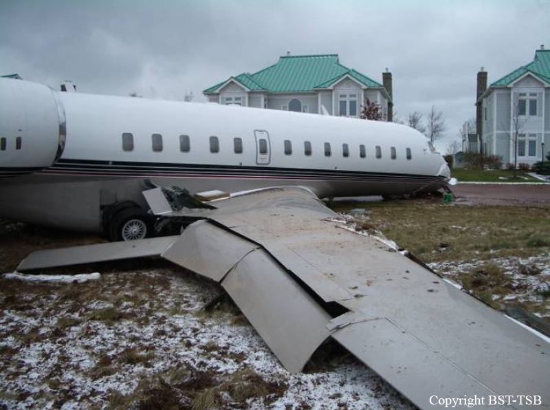 The aircraft, operated by Jetport Inc., departed Hamilton, Ontario, for Fox Harbour, Nova Scotia, with two crew members and eight passengers on board. At approximately 1434 Atlantic standard time, the aircraft touched down seven feet short of Runway 33 at the Fox Harbour aerodrome. The main landing gear was damaged when it struck the edge of the runway, and directional control was lost when the right main landing gear collapsed. The aircraft departed the right side of the runway and came to a stop 1000 feet from the initial touchdown point. All occupants evacuated the aircraft. One crew member and one passenger suffered serious injuries; the other eight occupants suffered minor injuries. The aircraft sustained major structural damage.