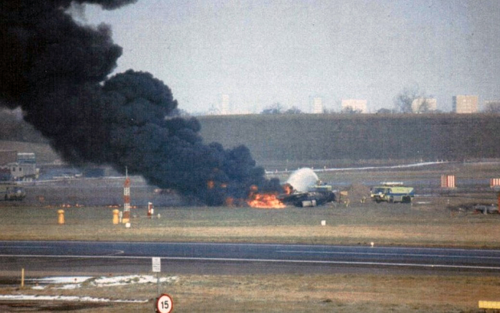 Following ATC clearance, engine start was at 1156 hrs and N90AG was cleared to taxi at 1201 hrs. All radio calls during the accident flight were made by the commander, seated in the right cockpit seat. During taxi, the crew completed their normal Before Takeoff Checks; these included confirmation that the control checks had been completed and that anti-ice might be required immediately after takeoff. Flap 20 had been selected for takeoff and the following speeds had been calculated and briefed by the pilots: V1 137 kt; VR 140 kt; V2 147 kt. By 1206 hrs, the aircraft was cleared to line up on Runway 15. At 1207 hrs, N90AG was cleared for takeoff with a surface wind of 140°/8 kt. The pilot in the left seat was handling the controls. Takeoff appeared normal up to lift-off. Rotation was started at about 146 kt with the elevator position being increased to 8°, in the aircraft nose up sense, resulting in an initial pitch rate of around 4°/second. Lift-off occurred 2 seconds later, at about 153 kt and with a pitch attitude of about 8° nose-up. Once airborne, the elevator position was reduced to 3° aircraft nose-up whilst the pitch rate increased to about 5°/second. Immediately after lift-off, the aircraft started to bank to the left. The rate of bank increased rapidly and 2 seconds after lift-off the bank angle had reached 50°. At that point, the aircraft heading had diverged about 10° to the left. Opposite aileron, followed closely by right rudder, was applied as the aircraft started banking; full right aileron and full right rudder had been applied within 1 second and were maintained until the end of the recording. As the bank angle continued to increase, progressively more aircraft nose-up elevator was applied. Stick-shaker operation initiated 3.5 seconds after lift-off and the recorders ceased 2 seconds later. The aircraft struck the ground, inverted, adjacent to the runway. The last recorded aircraft attitude was approximately 111° left bank and 13° nose-down pitch; the final recorded heading was about 114° (M). The aircraft was destroyed by impact forces and a post crash fire and all five occupants were killed, among them John Shumejda, President of the Massey-Ferguson Group and Ed Swingle, Vice President. The aircraft was leased by AGCO Massey-Ferguson.