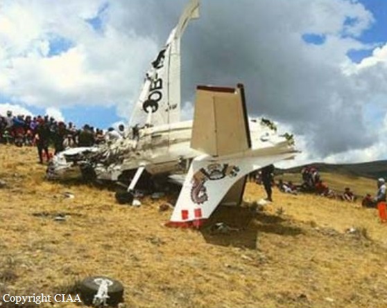 The single engine aircraft was completing a charter flight from Trujillo to Pucallpa, carrying two pilots and pilot. While cruising over the Cajamarca Province, the pilot encountered poor weather conditions with heavy rain falls. He modified his route and was able to continue under VFR mode in good weather conditions. Nevertheless, he continued at an insufficient altitude when the aircraft impacted ground and crashed in a mountainous area. The aircraft was destroyed by impact forces and all three occupants were killed. There was no fire.