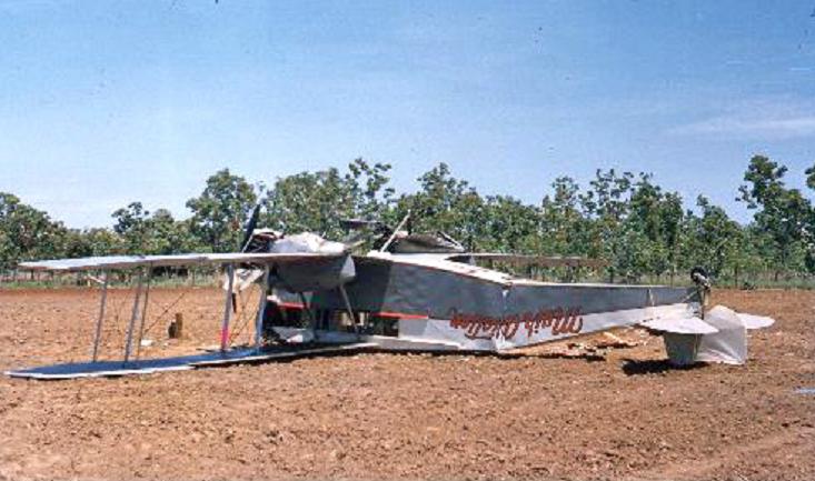 Shortly after takeoff, the aircraft turned to the right but failed to climb and after travelling some 8 miles was landed in an open field and overturned. All three occupants were slightly injured while the aircraft was damaged beyond repair.