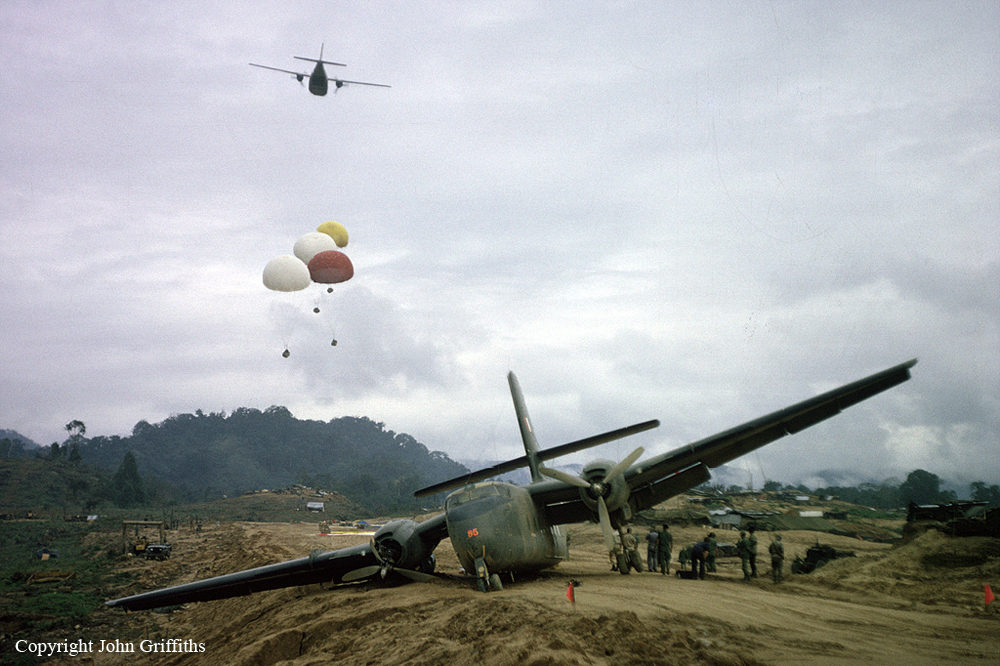 Upon landing at A Ro Airstrip, the right main gear collapsed and the airplane came to rest. There were no injuries but the aircraft was considered as damaged beyond repair and later scrapped.