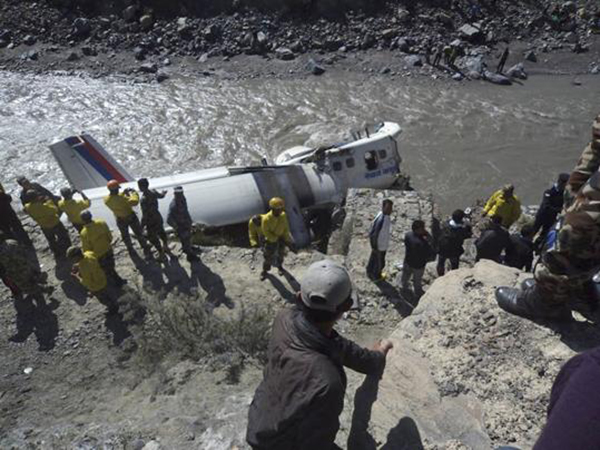 The Twin Otter (DHC6/300) aircraft with registration number 9N-ABO, owned and operated by Nepal Airlines Corporation (NAC), departed Kathmandu to Pokhara for night stop on 15 May 2013 in order to accomplish up to 5 (five) Pokhara-Jomsom-Pokhara charter flights planned for the subsequent day on 16 May 2013. As per the programme, the aircraft completed first charter flight from Pokhara to Jomsom sector on 16 May 2013 morning after one and half hour waiting on ground due weather. For this second flight, the aircraft departed at 0225 UTC (08:10LT) from Pokhara to Jomsom in the command of Capt. Dipendra Pradhan and Mr. Suresh K.C. as co-pilot. There were 19 passengers including one infant and 3 crew members on board. The aircraft was operating under Visual Flight Rules (VFR). As per the CVR readout there was no reported difficulties and all the pre and post departure procedure and en-route portion of the flight were completed in normal manner. There was no indication of lacking of information and advice from Jomsom Tower. At first contact the co-pilot called Jomsom Tower and reported its position at PLATO (a compulsory reporting point) at 9 miles from Jomsom airport at 12500ft. AMSL. The Jomsom Tower advised runway 24 wind south westerly 08-12 KTS, QNH 1020, Temp 13 degree and advised to report downwind for runway 24.The co-pilot accepted by replying to join downwind for runway 24. There was no briefing and discussion between the two pilots regarding the tail wind at the airport. The PIC, then, took over the communication function from co-pilot and called Jomsom Tower, requesting to use runway 06 instead of runway 24, despite the advice of tower to use runway 24 to avoid tail wind effect in runway 06. Jomsom Tower repeated the wind speed to be 08-12 KTS for the runway 06, to which the PIC read back the wind and answered to have ”no problem”. As per the PIC request the Jomsom Tower designated runway 06 for landing and advised to report on final runway 06. The PIC did read back the same. The pre landing checklist was used, flaps with full fine in propeller rpm were taken and full flaps was also taken before touchdown. In the briefing of “missed approach” the PIC had answered to be “standard”. The aircraft touched down runway of Jomsom airport at 0245 UTC (08:30LT) at a distance of approximately 776 ft, far from the threshold of runway 06. After rolling 194 ft. in the runway, the aircraft left runway and entered grass area in the right side. The aircraft rolled around 705 ft in the grass area and entered the runway again. The maximum deviation from the runway edge was 19 ft. The Commission has observed that when aircraft touched down the runway, it was not heading in parallel to the runway centreline. After touchdown the aircraft rolled around 194ft on the runway, left the paved area and started rolling in the grass area in the right side. During the landing roll, when the aircraft was decelerating, the co-pilot had raised the flaps as per the existing practice of carrying out “after the landing “checks". As per the observation of passenger seated just behind the cockpit, after touchdown of the aircraft there was no communication between pilot and co-pilot. It seemed that pilot was busy in cockpit and facing problem. It was obvious that PIC was in dilemma in controlling aircraft. He added power to bring aircraft into the runway with an intention to lift up the aircraft. He did not brief anything to copilot about his intention and action. He started adding power with the intention of lifting up, but the aircraft was already losing its speed, due to extension of flaps by co-pilot without briefing to PIC and use of brakes (light or heavy, knowingly and unknowingly) simultaneously by the PIC. The accelerating aircraft with insufficient speed and lift to take off ran out of the runway 24 end, continued towards the river, hit the barbed fence and gabion wall with an initial impact and finally fell down into the edge of river. The left wing was rested in the mid of the river preventing the aircraft submerged into the river.