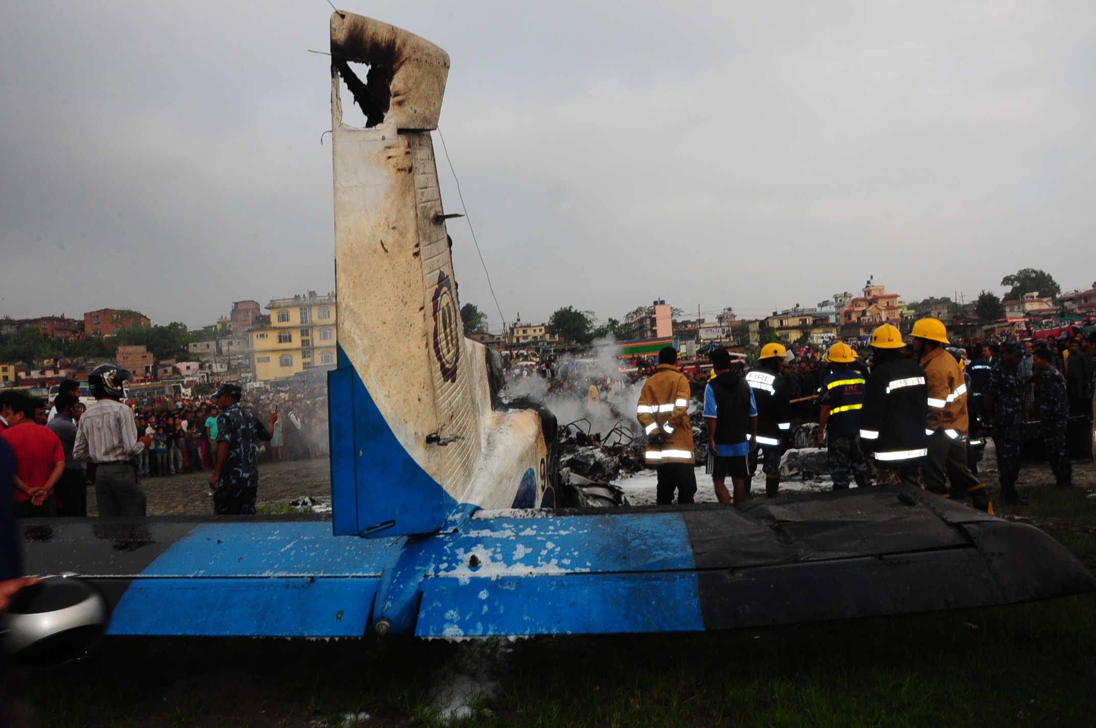 A Dornier 228 aircraft, registration 9N-AHA, was planned to operate a flight from Tribhuvan International Airport (TIA), Kathmandu, to Tensing/Hillary Airport, Lukla with 16 passengers and 3 crews. The Commander was the Pilot Flying (PF) which was in accordance with common practice for flight crews operating this route. The 0020Z METAR for TIA reported calm wind, 3,000 m visibility in mist, scattered cloud at 2,000 ft AAL, broken cloud at 10,000 ft AAL, a temperature of 19° C and a QNH of 1017 HPa. ATC broadcast a change in the QNH to 1018 HPa at 0029 hrs. At 0028 hrs (0613 am), the Co-pilot asked ATC for taxi clearance and 9N-AHA taxied towards Intersection 2 for Runway 20. While taxiing towards the runway the flight crew carried out the before takeoff checklist during which the Commander confirmed that Flaps 1 was set and all four booster pumps were ON. There was no emergency brief or discussion about the reference speeds to be used during the takeoff. The flight crew changed frequency and contacted the tower controller who gave them clearance to enter Runway 20 from the intersection and wait for clearance to takeoff. The Commander asked for the line-up checks to be completed during which the Speed Lever was selected to HIGH. After lining up, the Commander said "THERE IS A BIRD" and, three seconds later "I WILL TAKE FLAPS TWO" which was acknowledged by the co-pilot. The aircraft was cleared for departure and began its takeoff run at 0032 hrs. Two seconds after beginning the takeoff roll, the Commander said "WATCH OUT THE BIRD". The Co-pilot called "50 KNOTS " as the aircraft approached 50 kt and the Commander replied "CHECK". Two seconds later, the co-pilot called "BIRD CLEAR SIR" as the aircraft accelerated through 58 kt. Approaching 70 kt, approximately 13 kt below V1 and Vr , the first officer called "VEE ONE ROTATE". The aircraft began to rotate but did not lift off the ground and the nose was briefly lowered again. As the aircraft reached 86 kt, it lifted off the ground and the landing gear was raised immediately. As the aircraft began to climb, it accelerated to 89 kt over approximately 2 seconds. It continued to climb to 100 ft above the runway over the next 11 seconds but, during this time, the speed decreased to 77 kt. The aircraft then flew level for 14 seconds during which time the following occurred: the speed decreased to 69 kt; the air traffic controller asked "ANY TECHNICAL?" to which the pilot replied "[uncertain]….DUE BIRD HIT"; it's heading changed slowly from 200 °M to approximately 173 °M; and the stall warning was triggered for three seconds as the aircraft decelerated through 71 kt. Two seconds after the stall warning ended, it was triggered again for approximately six seconds with the airspeed at 69 kt. The aircraft began a gentle descent at 69 kt with the stall warning sounding and the rate of turn to the left increased rapidly. It departed controlled flight, most probably left wing low, and crashed into a small open area 420 m south-east of the end of Runway 20. A runway inspection found the remains of a bird, identified as a "Black Kite", at a position 408 m from Intersection 2. No bird strike was reported in relation to any other departure.