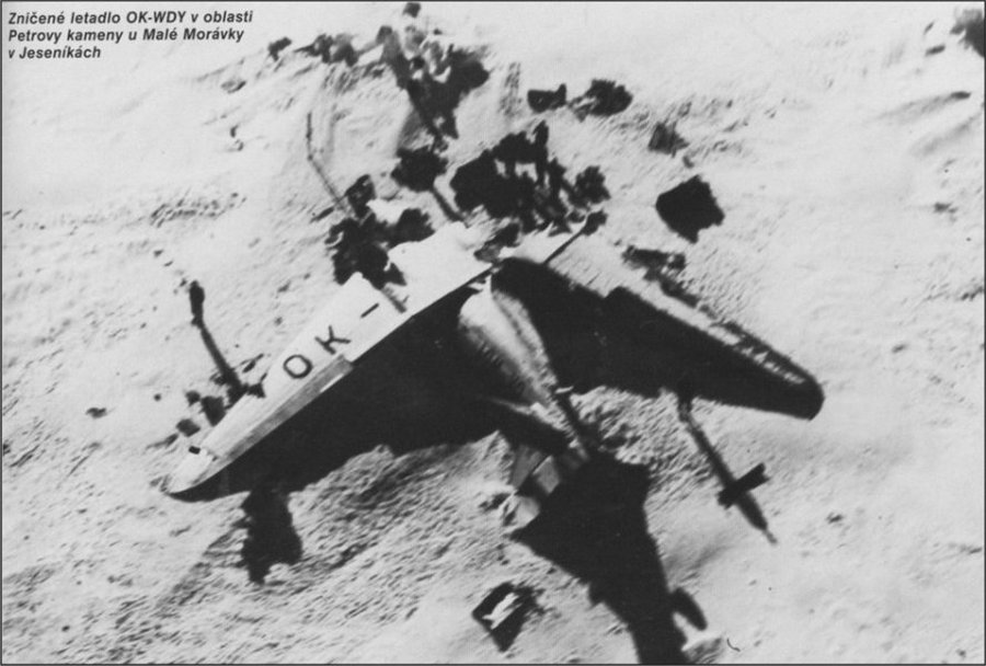 About thirty minutes after his departure from Ostrava Airport, the crew encountered poor weather conditions with drizzle, low visibility and strong winds gusting to 90 km/h. While cruising at an altitude of 1,440 meters, the aircraft hit the slope of Mt Praděd (1,491 meters high). The aircraft was destroyed and rescuers arrived on site few hours later. Three crew members and two passengers were killed.