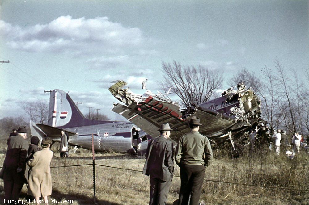 The aircraft was heard southwest of the airport at 0327 and at this time Cleveland Tower cleared the flight to land on Runway 36-Left. At 0328 the air-craft was observed over the airport at an altitude of between 200 and 400 feet flying In a northeasterly direction. When approximately over the north boundary, the aircraft disappeared from view in what appeared to be a low cloud formation. At this time Cleveland Tower advised the flight that It was cleared to use Runway 36-Left, Runway 36-Right, or Runway 31, at the captain's discretion. The aircraft was next seen re-approaching the airport from the northeast in a right turn, during which turn the landing lights were switched on. In the latter part of the turn, a descent was established and this descent was continued in a northwesterly direction toward the dark, undeveloped area north of the airport. With the exception of the fact that the aircraft was heading toward an area not within the boundary of the airport, its appearance was that of an aircraft in a normal landing approach. When at an altitude of approximately 30 feet, the aircraft banked slightly to the left and, immediately thereafter it struck trees and high tension lines paralleling the north boundary of the airport. The aircraft veered sharply to the right and dived into the ground, coming to rest approximately 550 feet beyond the point of initial contact.