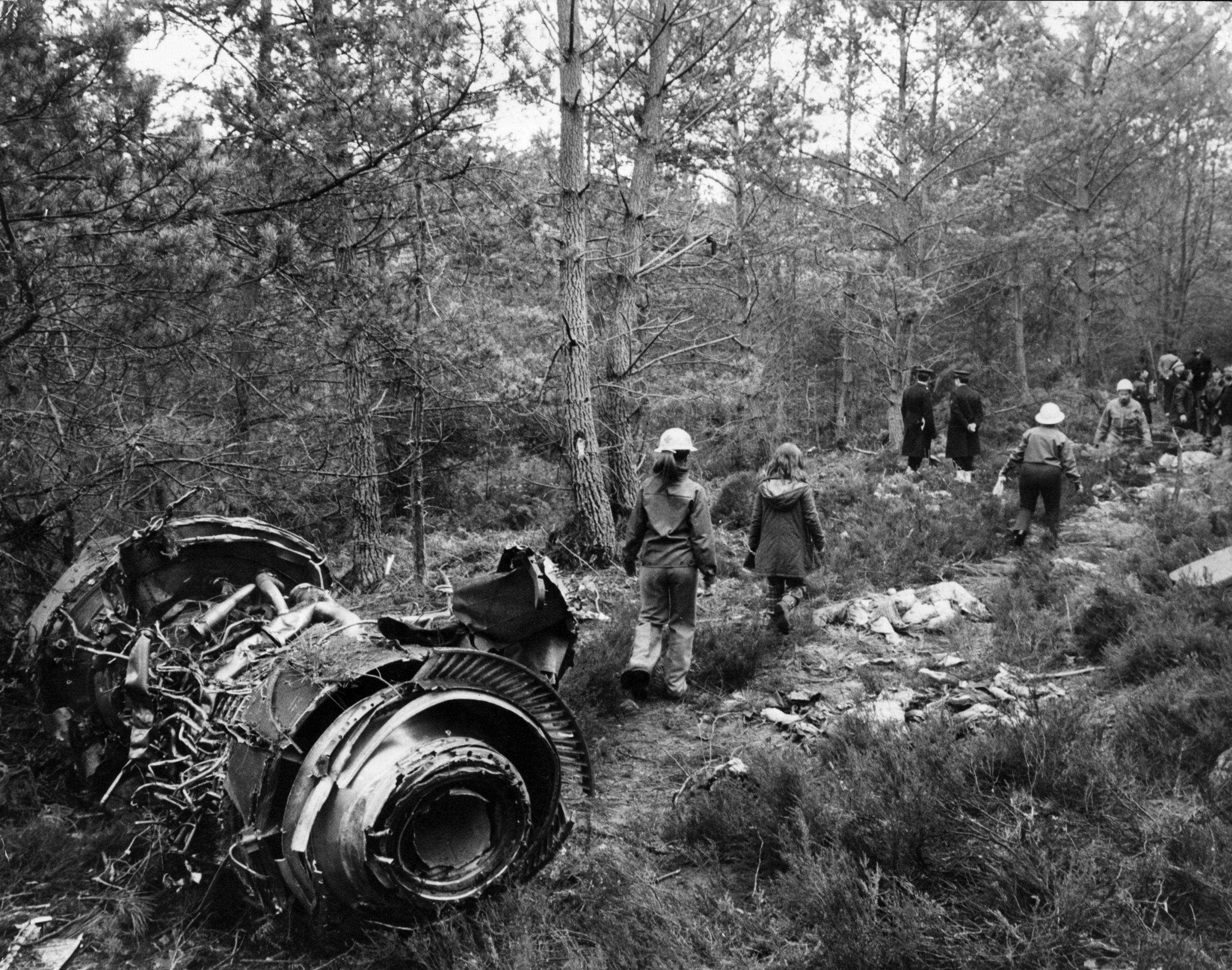 On Sunday March 3, 1974 flight TK981 departed Istanbul for a flight to Paris and London. The DC-10 landed at Paris-Orly at 11:02 and taxied to stand A2. There were 167 passengers on board, of whom 50 disembarked. The aircraft was refueled and baggage was loaded onto the plane. The planned turnaround time of one hour was delayed by 30 minutes. An additional 216 passengers embarked. Most of the passengers were booked on this flight because of a strike at British Airways. The door of the aft cargo compartment on the left-hand side was closed at about 11:35. When all preparations were complete the flight received permission to taxi to runway 08 at 12:24. Four minutes later the crew were cleared to line up for departure and were cleared for departure route 181 and an initial climb to flight level 40. The aircraft took off at approximately 12:30 and was cleared by Orly Departure to climb to FL60, which was reached at 12:34. The North Area Control Centre then cleared TK981 further to FL230. Three or four seconds before 12:40:00 hours, the noise of decompression was heard and the co-pilot said: "the fuselage has burst" and the pressurization aural warning sounded. This was caused by the opening and separation of the aft left-hand cargo door. The pressure difference in the cargo bay and passenger cabin, the floor above the cargo door partly collapsed. Two occupied tripe seat units were ejected from the aircraft. All the horizontal stabilizer and elevator control cables routed beneath the floor of the DC-10 and were thus also severely disrupted. Also the no. 2 engine power was lost almost completely. The aircraft turned 9 deg to the left and pitched nose down. The nose-down attitude increased rapidly to -20 deg. Although the no. 1 and 3 engines were throttled back the speed increased to 360 kts. The pitch attitude then progressively increased to -4 degrees and the speed became steady at 430 kts (800 km/h). At a left bank of 17 degrees the DC-10 crashed into the forest of Ermenonville, 37 km NE of Paris. The aircraft disintegrated on impact and all 346 occupants were killed, among them 48 Japanese citizens and almost 250 British people.