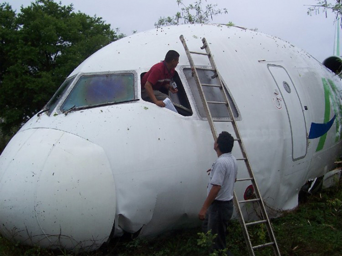 The aircraft departed Miami-Intl Airport on a night cargo flight to Managua, carrying three crew members and a load consisting of 50 tons of chemical and toxic products. After touchdown on runway 09 which is 2,450 metres long, the aircraft was unable to stop within the remaining distance. It overran, went through a fence, lost its nose gear and came to rest 350 metres further in trees. All three crew members escaped uninjured while the aircraft was damaged beyond repair.