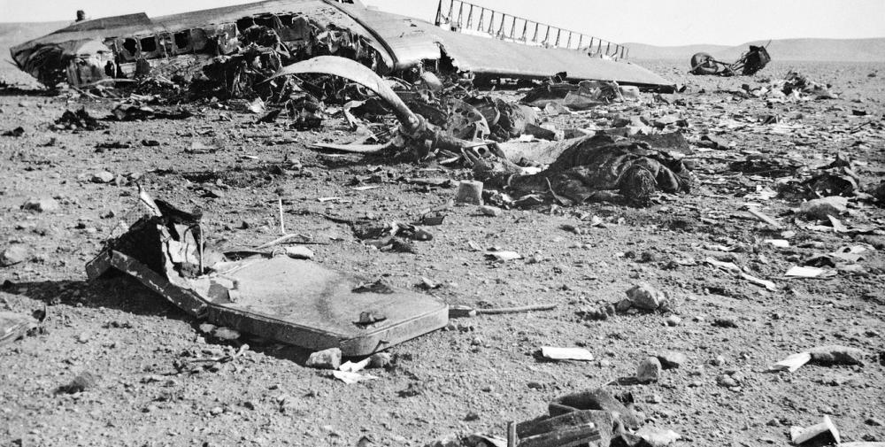The crew departed Cairo-Almaza Airport at 2330LT bound for Baghdad. While overflying the Iraqi Desert at night, the crew encountered poor weather conditions and decided to divert to Ruţbah Wells. On approach, the aircraft was at full power when it impacted the ground in a 17° right bank angle and 12° nose down attitude. The aircraft crashed and exploded some 16 km from the Ruţbah Wells Airfield. The aircraft disintegrated on impact and all seven occupants were killed.