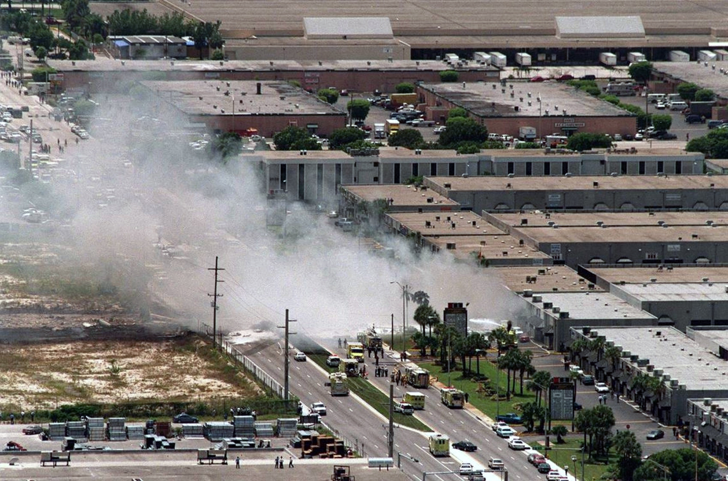 Fine Air Flight 101 was originally scheduled to depart Miami for Santo Domingo at 09:15 using another DC-8 airplane, N30UA, to carry cargo for Aeromar. Due to a delay of the inbound aircraft, Fine Air substituted N27UA for N30UA and rescheduled the departure for 12:00. N27UA arrived at Miami at 09:31 from San Juan, Puerto Rico, and was parked at the Fine Air hangar ramp. The security guard was not aware of the airplane change, and he instructed Aeromar loaders to load the airplane in accordance with the weight distribution form he possessed for N30UA. The first cargo pallet for flight 101 was loaded onto N27UA at 10:30 and the last pallet was loaded at 12:06. The resulting center of gravity (CG) of the accident airplane was near or even aft of the airplane’s aft CG limit. After the three crew members and the security guard had boarded the plane, the cabin door `was closed at 12:22. Eleven minutes later the flight obtained taxi clearance for runway 27R. The Miami tower controller cleared flight 101 for takeoff at 12:34. Takeoff power was selected and the DC-8 moved down the runway. The flightcrew performed an elevator check at 80 knots. Fourteen seconds later the sound of a thump was heard. Just after calling V1 a second thump was heard. Two seconds later the airplane rotated. Immediately after takeoff the airplane pitched nose-up and entered a stall. The DC-8 recovered briefly from the stall, and stalled again. The airplane impacted terrain in a tail first, right wing down attitude. it slid west across a road (72nd Avenue) and into the International Airport Center at 28th Street and burst into flames. Investigation showed that the center of gravity resulted in the airplane’s trim being mis-set by at least 1.5 units airplane nose up, which presented the flightcrew with a pitch control problem on takeoff.