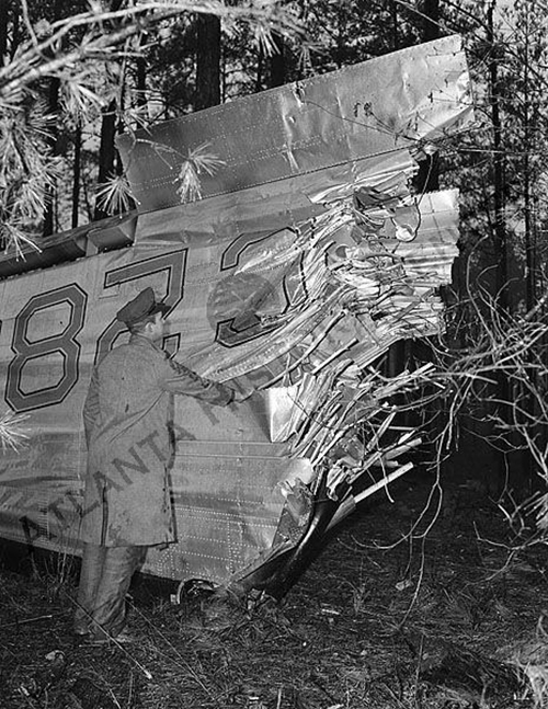 On final approach to Atlanta-Candler Field at night, the crew encountered poor visibility due to fog and rain falls. Too low on final, the airplane impacted trees and crashed in a pine forest located few km short of runway. Rescue teams arrived on the scene at 0630LT the following morning. Eight passengers seriously injured were evacuated to local hospitals while eight other occupants were killed, among them all three crew members.