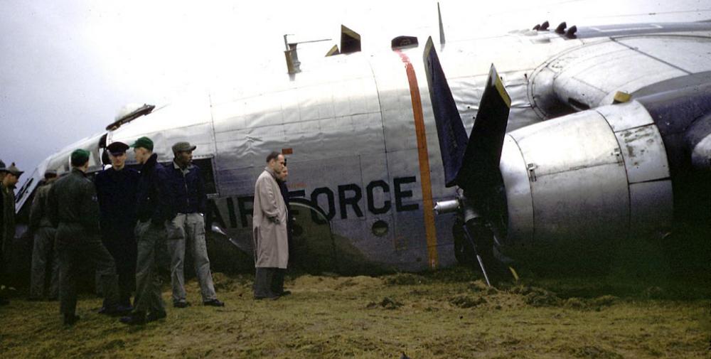 During the takeoff roll on runway 30 at Ashiya Airbase, at a speed of 70 knots, the right engine lost power. The captain decided to abandon the departure and started an emergency braking procedure. Unable to stop within the remaining distance (runway 30 is 6,000 feet long), the airplane overran, lost its undercarriage and came to a halt in a grassy area. All seven crew members were evacuated safely while the aircraft was damaged beyond repair.