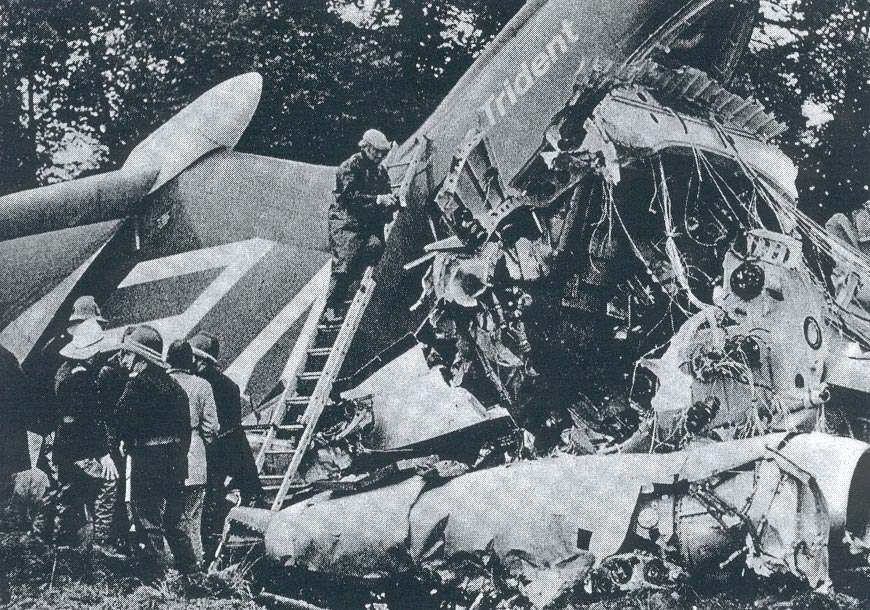 Following a normal takeoff roll on runway 28R, the aircraft rotated 42 seconds after brakes were released and lifted off 2 seconds later at 145 knots IAS. At 63 seconds the autopilot was engaged 355 feet above the runway at 170 knots IAS; the IAS speed lock was selected shortly thereafter. At 74 seconds the aircraft started a 20° banked turn to port towards the Epsom Non-Directional Beacon (NDB). At 83 seconds the captain reported 'Climbing as cleared'. He was then instructed to change frequency and contact London Air Traffic Control Centre. At 93 seconds the noise-abatement procedure was initiated. On the assumption that the captain was the handling pilot, this would involve the second officer selecting the flaps fully up and operating the thrust levers to reduce power to the pre-calculated figure. At 100 seconds the captain called 'Passing 1500' and at 103 seconds the aircraft was cleared to climb to Flight Level 60. This message was acknowledged by the captain at 108 seconds with the terse call 'up to 60'. This was the last message received from the flight. At second 114 when the airspeed was 162 knots and the altitude 1,772 feet, the droop lever was selected up putting the aircraft into the area of the stall as the droop started to move. At second 116 the stick-pusher stall recovery device operated, causing the autopilot automatically to disengage and the nose of the aircraft to pitch down and the stick-push to cease as the incidence decreased. Since the elevator trim would stay at its position on autopilot disengagement which at that speed with the droop up would be - the incidence then increased causing a second stick-push at second 124 and a third at second 127. At second 128 the stall recovery system was manually inhibited by pulling the lever. The aircraft then pitched up rapidly, losing speed and height, entering very soon afterwards the true aerodynamic stall and then a deep stall from which at that height no recovery was possible. Impact was at second 150 in a field next to the A30 motorway. The aircraft was totally destroyed and none of the 118 occupants survived the crash.