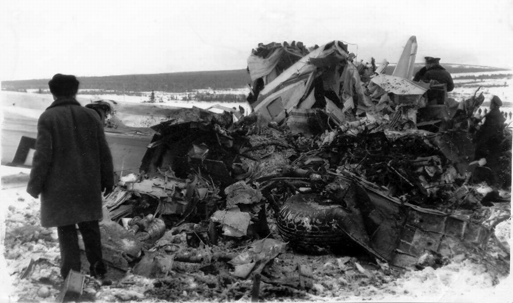 The crew was completing a cargo flight from Takhtamygda to Kyzyl-Syr with one passenger on board. While cruising in clouds, the left engine failed. The captain decided to divert to Aldan for an emergency landing. On approach, the crew was unable to lower the gear so the captain decided to make a go-around. Due to the presence of mountains all around the airport, the captain decided to make a sharp turn to the left. From a height of 15-20 meters, the airplane banked left then stalled and crashed in a snow covered field located near the airport. The aircraft was destroyed and all five occupants were killed.