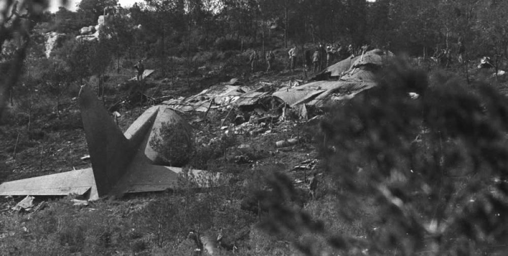 Inbound from Ramstein AFB, Germany, the four engine airplane was descending to Zaragoza Airport, carrying nine passengers and nine crew members, among them a high ranking officer from the Spanish Air Force. Arriving in the Spanish Airspace, the crew was supposed to take part to a joined exercise with the Ejército del Aire (Spanish Air Force). While cruising at an altitude of 2,200 feet in marginal weather conditions with flaps down at 50° and at a speed of 250 km/h, the aircraft struck the slope of a mountain located in the Sierra de Moncayo, west of Borja. The aircraft disintegrated on impact and all 18 occupants were killed. At the time of the accident, the visibility was estimated to 6 km with a ceiling at 1,200 feet.