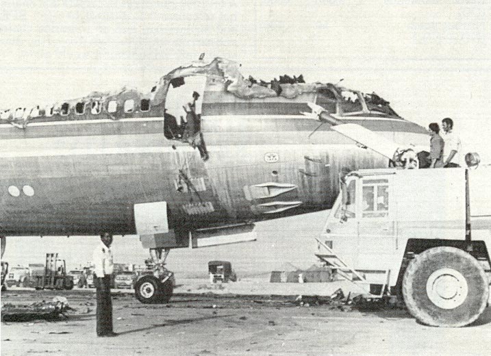 The accident was survivable. The first door was opened about 23 min after all engines had been shutdown. The first rescue attempt was conducted at L-1 door. Most witness statements agree in content but differ slightly in the time factor element. A witness who participated in the first two efforts to open the doors stated that he was aboard fire truck n°4 was it was positioned near the left rear portion of the aircraft. He observed thick white smoke flowing from the bottom rear fuselage. At that time the aircraft engines were still running. A few seconds later, he observed smoke near the top of the fuselage, forward of the n°2 engine inlet. According to him, this smoke was followed almost immediately by flames in the same area. As the driver of n°4 started applying agent via the monitor, the witness dismounted and moved toward exit L-1. His route was outboard of n°1 engine which he thought was still running. On approaching L-1, he observed the fire chief and other people attempting to reach the L-1 emergency handle via a ladder which was placed on top of fire truck n°6. While fire personnel steadied the ladder, he climbed up and pulled the emergency handle. He was not certain if the door moved or not. An additional effort was attempted while he held onto and rode the monitor. While on the monitor, he pushed on the door to no avail. Most of :he group then moved to R-2 where another ladder had been positioned by other firemen. A firemen then climbed the ladder, operated the handle and the door opened in the emergency mode. The cabin was observed to be full of smoke and no life was observed nor were any human sounds heard. R-2 door was opened at 1905, 26 min after the aircraft came to a stop and 23 min after the shutdown of all engines. Shortly after (about 3 min) R-2 was opened, flames were seen progressing forward from the rear section of the cabin.