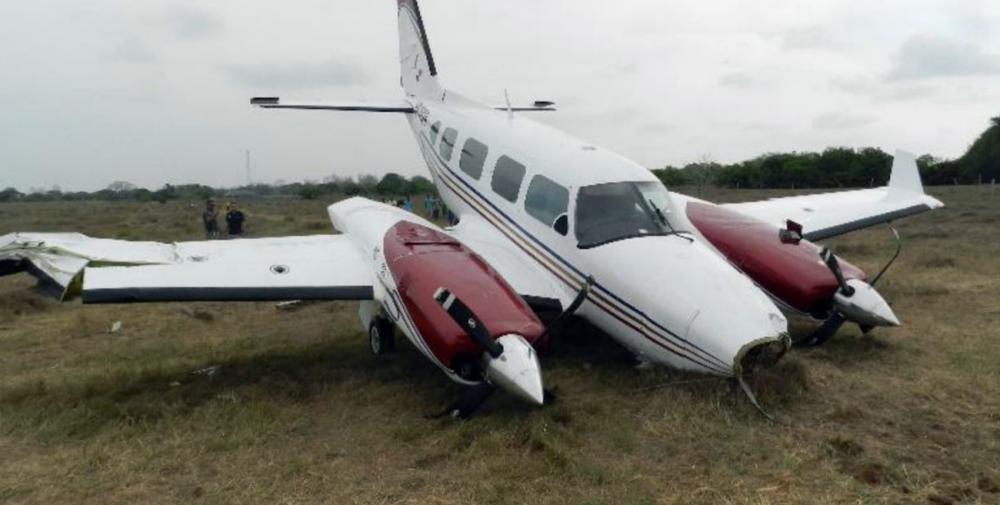 The twin engine aircraft departed Cali-Alfonso Bonilla Aragón Airport in the morning on a flight to Tolú, carrying seven passengers and one pilot. After takeoff from Tolú, the pilot decided to position to Montería-Los Garzones Airport. Shortly after takeoff, the pilot encountered engine problems and elected to make an emergency landing in a pasture. Upon landing, the right wing collided with obstacles then the nose gear collapsed and the aircraft came to rest near Purísima de la Concepción, about 10 km east of Tolú. The pilot was uninjured and the aircraft was damaged beyond repair.