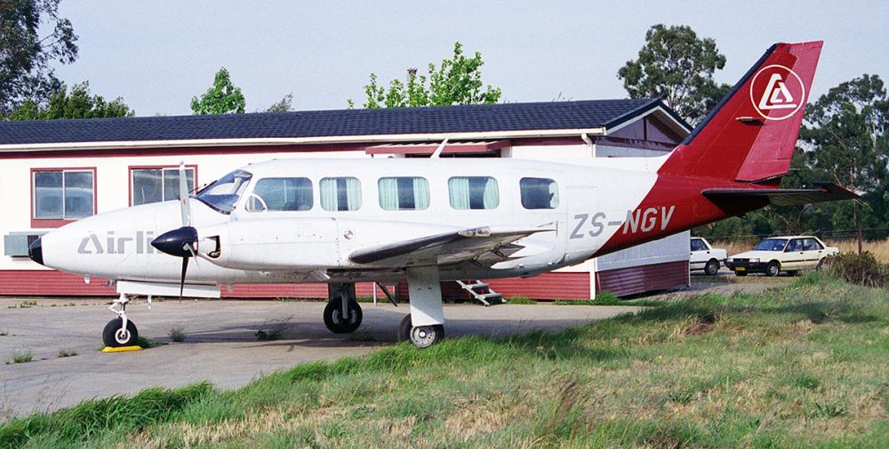 Following a night takeoff from Manzini-Matsapha Airport, the twin engine aircraft struck power cables and crashed. The captain survived while the copilot and the passenger, a company mechanic, were killed. It was reported that a turbocharger fitted to one of the engines was not compliant. Also, the pilot's licence was forged. Poor engine maintenance was identified.