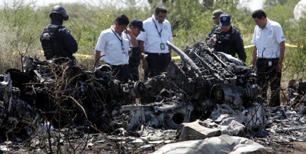 The twin engine aircraft was engaged in a local post maintenance test flight at Monterrey-Del Norte Airport. Shortly after takeoff, the airplane encountered difficulties to gain height when it stalled and crashed in a field located 500 metres past the runway end, bursting into flames. The aircraft was destroyed by fire and both occupants were killed.