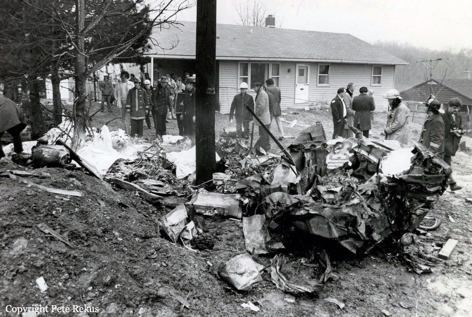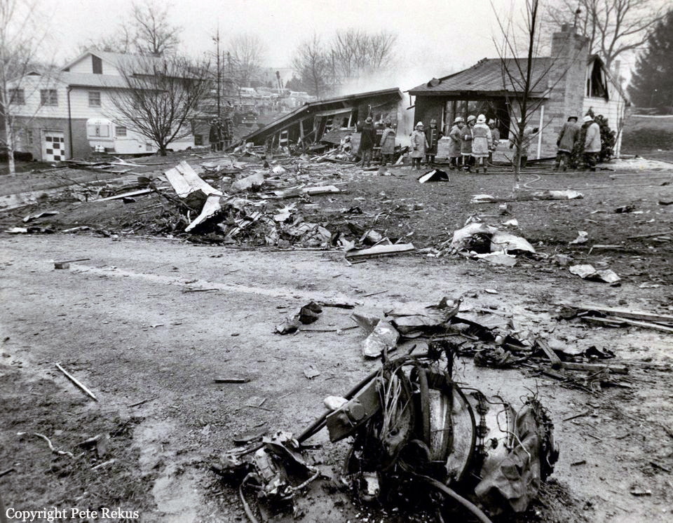 Shortly after takeoff from Harrisburg-Capital City Airport runway 08, the twin engine aircraft went out of control and crashed in flames onto a house located in a populated area in the town of Bressler, 1,55 statute miles from the departure end of runway 08. The aircraft disintegrated on impact and all eight occupants were killed as well as one people in the house.
