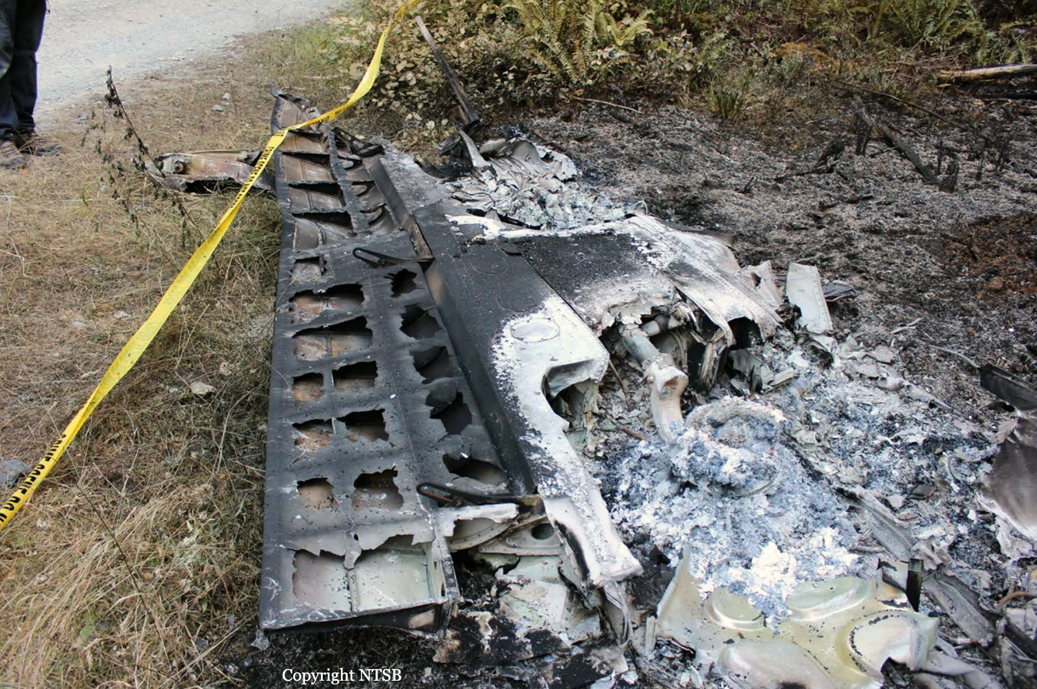 About 13 minutes after takeoff for a medical transport flight, while climbing through about 14,900 ft mean sea level (msl), the pilot reported to air traffic control (ATC) that he was smelling smoke in the cockpit and would be returning to the originating airport. The flight was cleared to return with a descent at pilot's discretion to 9,000 ft msl. The pilot replied, "okay," and said that it looked like he was going to lose some power shortly. The pilot then stated that he had smoke in the cockpit, declared an emergency, and requested that ATC contact the fire department. About 1 minute 15 seconds after the initial report of smelling smoke, the pilot made the last radio transmission of the flight stating that he had three people on board. The wreckage was located about 9 hours later in an area of brush and heavily forested terrain. Portions of the burned and fragmented wreckage were scattered along a debris path that measured about 2,400 ft in length, which is consistent with an inflight breakup. The center fuselage and cockpit areas were largely intact and displayed no evidence of fire; however, there was an area of thermal damage to the forward fuselage consistent with an inflight fire. The thermal damage was primarily limited to the floor area between the two forward seats near the main bus tie circuit breaker panel and extended to the forward edge of the wing spar. All exposed surfaces were heavily sooted. Some localized melting and thermal-related tearing of the aluminum structure was present. The primer paint on the floor panels under the right aft corner of the pilot seat and the left aft corner of the co-pilot seat was discolored dark brown. An aluminum stringer in this location exhibited broomstrawing indicating that the stringer material was heated to near its melting point prior to impact. A single wire located in the area exhibited notching consistent with mechanical rubbing. The main bus tie circuit breakers were partially missing. The remaining breakers were heavily sooted on their aft ends, and one breaker was thermally discolored. Areas of charring were on the backside of the panel. Examination of the wiring in this area showed evidence of electrical arcing damage. Four hydraulic lines servicing the landing gear system were located in this area, and all the lines exhibited signs of thermal exposure with melting and missing sections of material. Six exemplar airplanes of the same make and model as the accident airplane were examined, and instances of unsafe conditions in which electrical lines and hydraulic lines in the area of the main bus tie circuit breaker panel were in direct contact were found on all six airplanes. Some of the wires in the exemplar airplanes showed chafing between hydraulic lines and the electrical wires, which, if left uncorrected, could have led to electrical arcing and subsequent fire. Based on the unsafe conditions found during examination of the exemplar airplanes and the thermal damage to the area near the main bus tie circuit breaker panel on the accident airplane, including broomstrawing of the aluminum structure, electrical arcing damage to the wiring, and melting of the hydraulic lines, it is likely that an electrical wire near the tie bus circuit breakers chafed on a hydraulic line and/or airplane structure, which resulted in arcing and a subsequent in-flight fire that was fed by the hydraulic fluid.